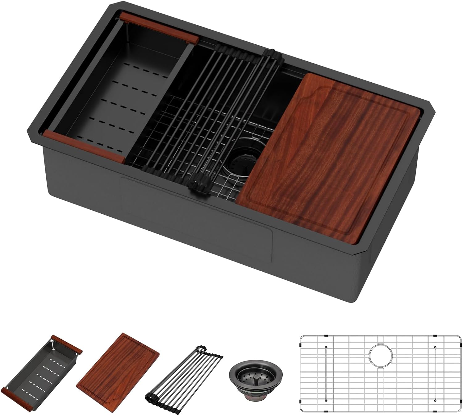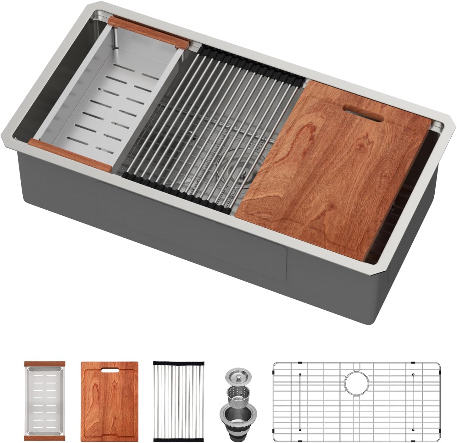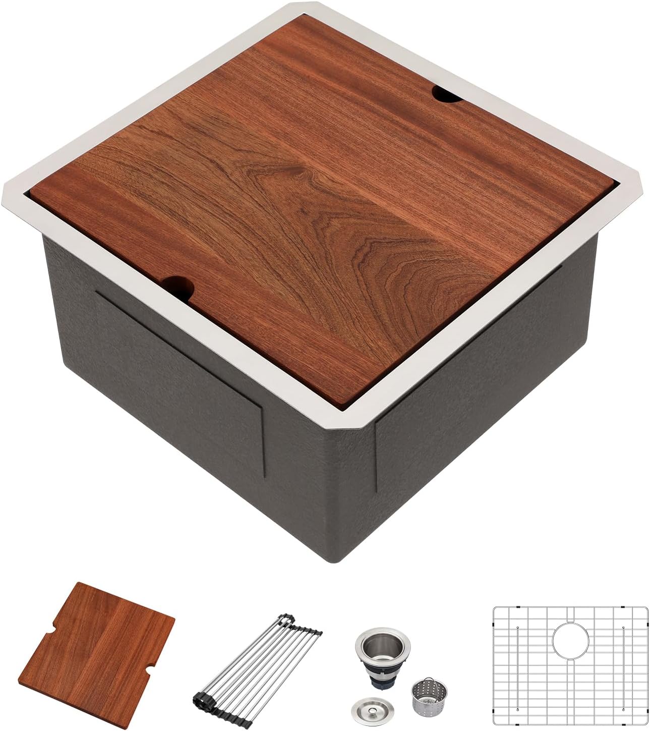 | Included Components | 15x15 Inch Undermount Sink, Bottom Rinse Grid & Cutout Template, Cutting Board, Mounting Hardware & Installation Instruction, Roll Drying Rack & Drain Strainer |