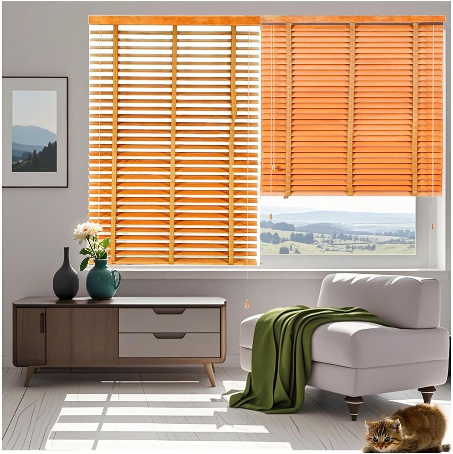 Wood blinds feature 2-inch wide smooth slats for a solid structure and smooth rotation, allowing you to easily adjust the angle of light to enhance the comfort of your space. Each curtain leaf is made of natural wood polished with fine texture, bringing a warm and natural visual experience. Supporting a variety of colors and sizes, whether it is a bedroom, living room or study, you can find a perfect fit for the space.Product Name: wood blindsProduct material: natural woodSlat width: 2inlight blockage:80%Features: sturdy, Light Filtering, Privacy, Blackout, Anti-UV, Heat Insulation, Inside/Outside MountProduct size: width x height, customizable (width 15"~77" ;heigh 30"~120")Package details: wood blindsx1, installation accessoriesSize measurement:External installation:blinds width = window width + 8 inchesblinds height = window height + 8 inchesInternal Installation:blinds width = window width - 0.4 inchesblinds height = window height