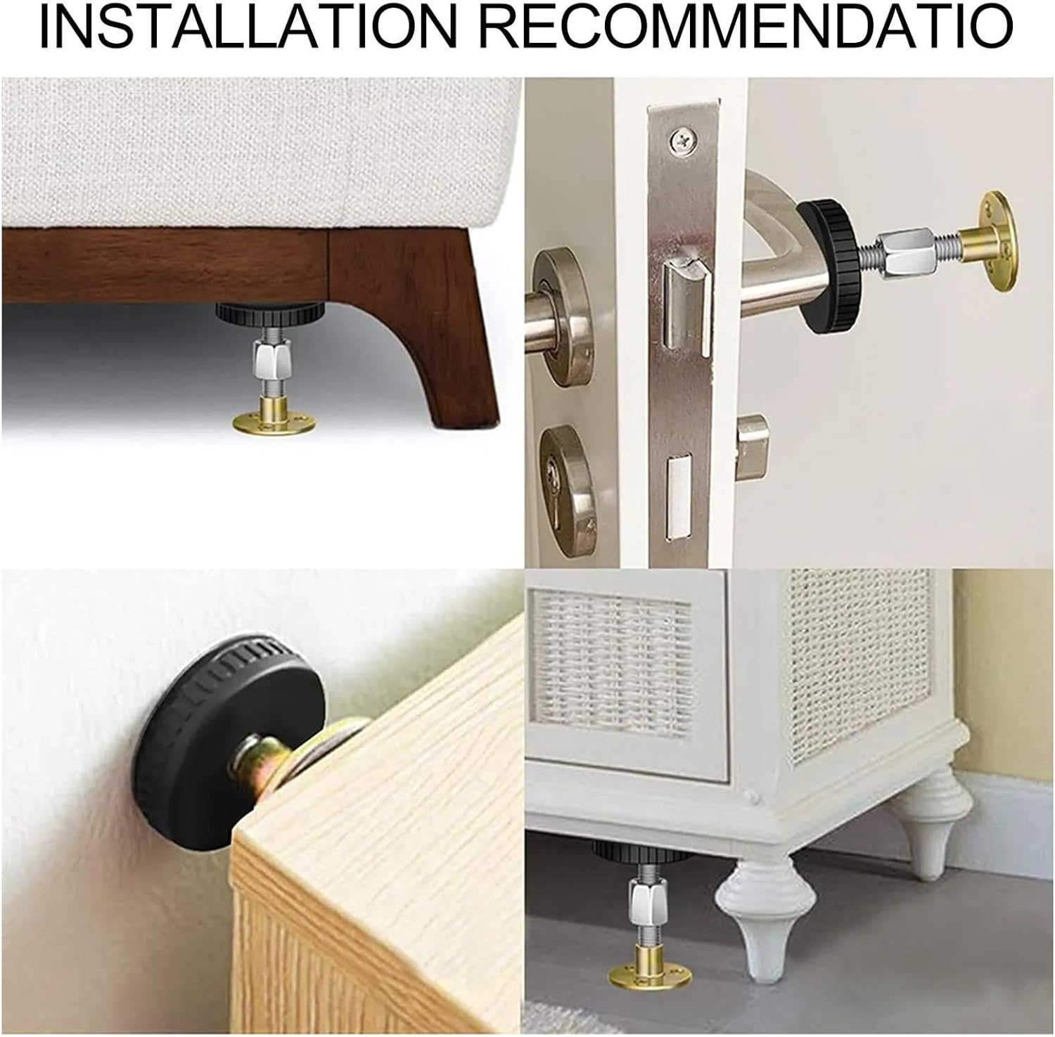 Product description Features:*Adjustable Threaded Bed Frame Anti-Shake Tool: The 2pcs headboard stoppers are designed to prevent shaking and provide stability for your bed, cabinet, and sofa.*Telescopic Support for Stabilizer: These headboard stoppers come with a telescopic design, allowing you to adjust the height according to your needs.*Prevent Shaking Headboard Pad: The padded of the stoppers effectively absorbs vibrations, avoiding your headboard from shaking and providing a quiet sleep environment.*Easy to Install: Easily attach the stoppers to the bed wall or cabinet using the threaded design, a secure and hassle-free installation.*Versatile Usage: Apart from being for bed walls, these stoppers can also be used for cabinets and sofas, providing additional stability and avoiding any movement.Specifications:*Product Name:2PCS Headboard Stoppers*Material: Metal + Plastic*Size: L: 33-40MM, 46-64MM, 67-87MM, 84-110MM (Show as the picture)*Color: Show as the pictureType: S, M, L, XL(optional)Package Content:2*Headboard Stoppers2*Double-sided tape 2*Pads Manufacturer Contact Information no
