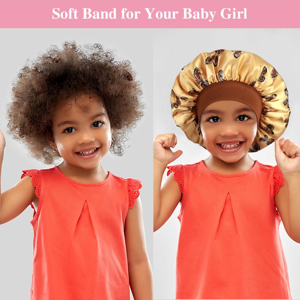 【Premium Satin Retain Hair Moisture】- Our wide band silky bonnets help maximally MAINTAIN MOISTURE of hair and increase brilliant shine, help child’s hair not to get tangled up during the tossing and turning while they sleeping. Besides, it prevents hair loss, reduce split ends.