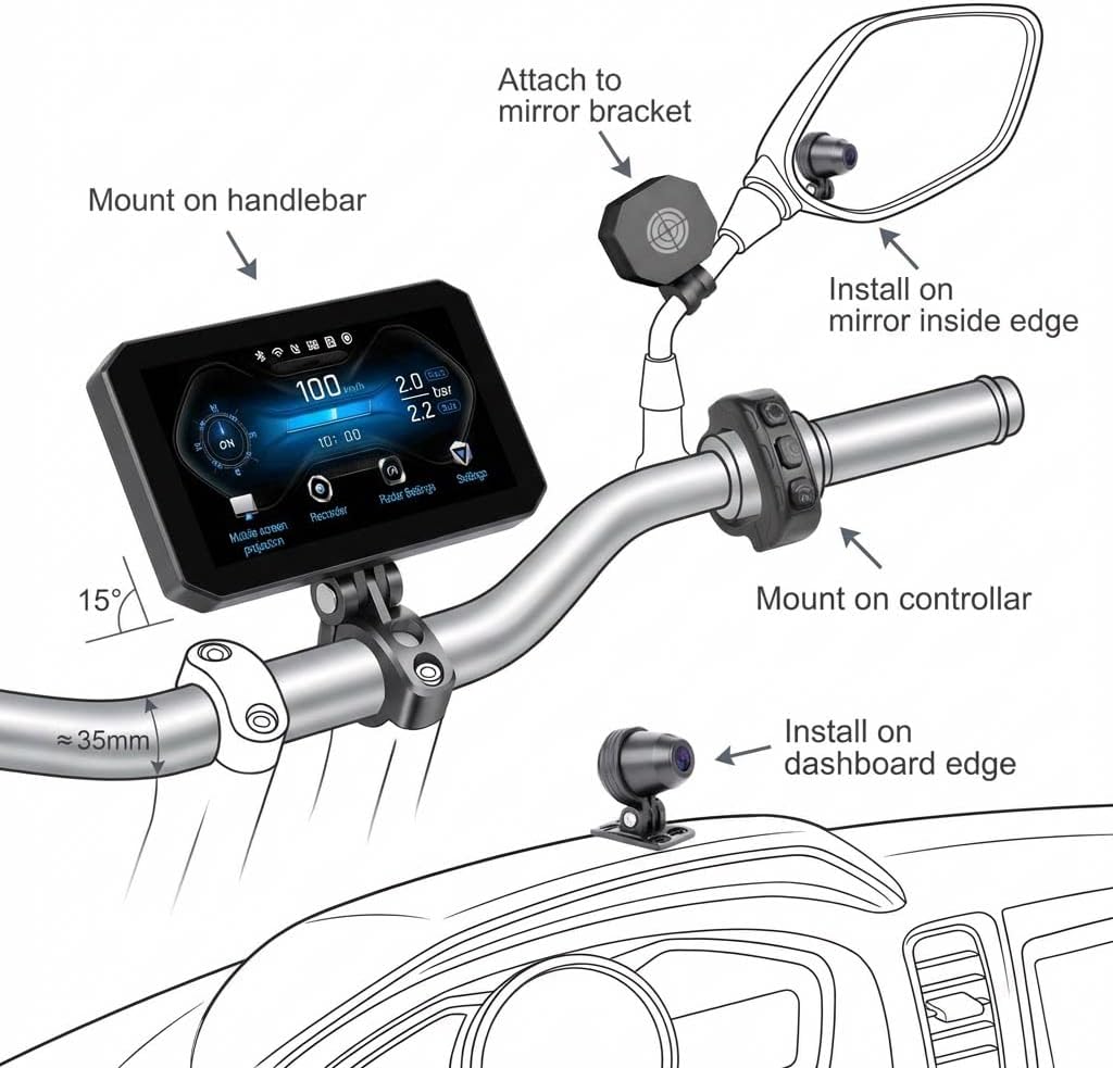 Tired of janky phone mounts that slip and slide mid-ride? Fed up with tangled charging cables and screens that go dark in bright sun? Upgrade your ride instantly with our 5.5 Inch Motorcycle Wireless CarPlay & Android Auto Smart Screen – the ultimate gear upgrade every rider needs, designed by riders, for riders. This isn’t just a regular navigation screen, it’s your all-in-one riding companion with a perfect 5.5-inch display that makes every trip safer, smoother and way more fun. Wireless pairing means no more fumbling with wires, just connect your phone once and you’re good to go every time. Access your go-to navigation, playlists, contacts and voice assistants easily, all while keeping your focus on the open road ahead. We know riding means facing all kinds of weather and rough roads, so we built this screen to be tough as nails. IP67 waterproof and dustproof protection means sudden rainstorms or dusty trails won’t slow it down, and the anti-vibration design stays steady even on the bumpiest backroads. The anti-glare sunlight-readable display works perfectly from sunrise to sunset, so you’ll never miss a turn or a notification. Installation is so easy it’s foolproof – the adjustable universal mount locks securely to your handlebars, and plug-and-play design gets you ready to ride in minutes, no fancy mods or expert help required. It fits nearly all mainstream motorcycle models, making it the perfect universal upgrade for any rider, new or seasoned. Whether you’re cruising to work, hitting the highway for a long trip, or exploring off-road trails, this smart screen elevates your whole riding experience. No more distractions, no more faulty gear, just pure riding joy. Backed by reliable quality and quick support, we’ve got your back for every mile you ride – hit the road with confidence and good vibes only!
