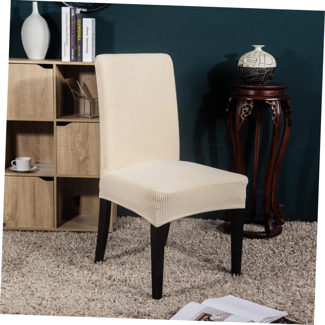Package List 6 covers Features - Material: Polyester, spandex Chair Case. -Product Info:Dining chair cover - Size: 55x49x49cm Elastic Cover. - Suitable for Chair Size: Thickness of chair back: within 10 cm; Chair Back Height: 46-55cm; Chair Back Width: 36-48 cm; Seat Length: 38-49cm; Seat Width 38-49cm Chair Protector. - Color: beige. - Suitable various occasions, wedding, banquet, party, meeting, ceremony, etc Stretchy Chair Cover. - It is suitable for most of dining room chairs, chairs, banquet chairs, folding chairs Polyester Chair Cover. - Easy to clean, washable, convenient to use, foldable to storage. - Protect your chair , wet, scratch and etc. - Made of spandex and polyester, flexible enough for most of chairs.Goods DescriptionPolyester Chair Cover This chair cover is made of spandex and polyester, flexible enough for most of chairs.Stretchy Chair Cover Not only can protect your chair , wet and scratch, also can decorate your chair so well.Chair Case With simple design, comfortable, wrinkle resistant, machine washable, easy to wash