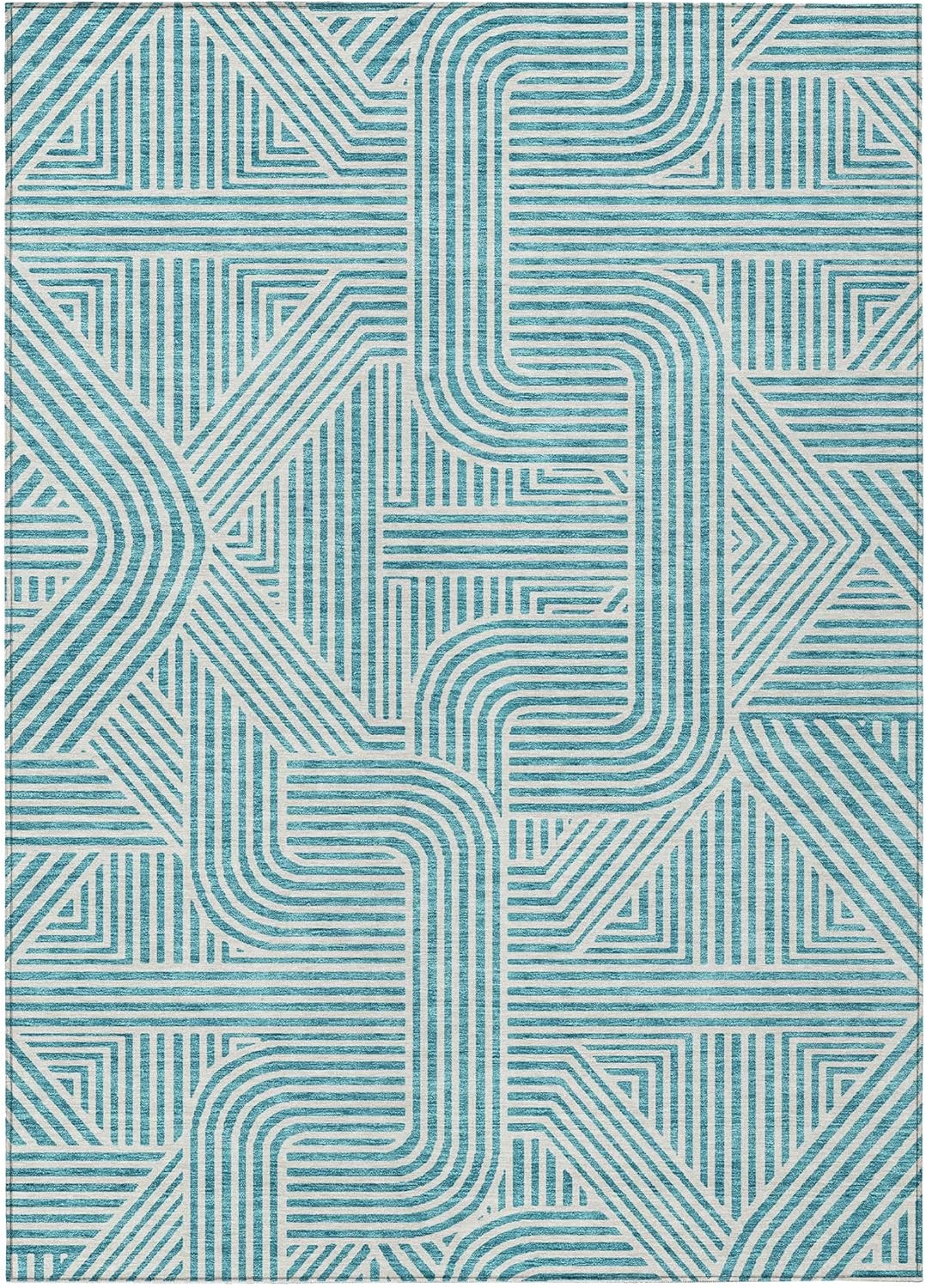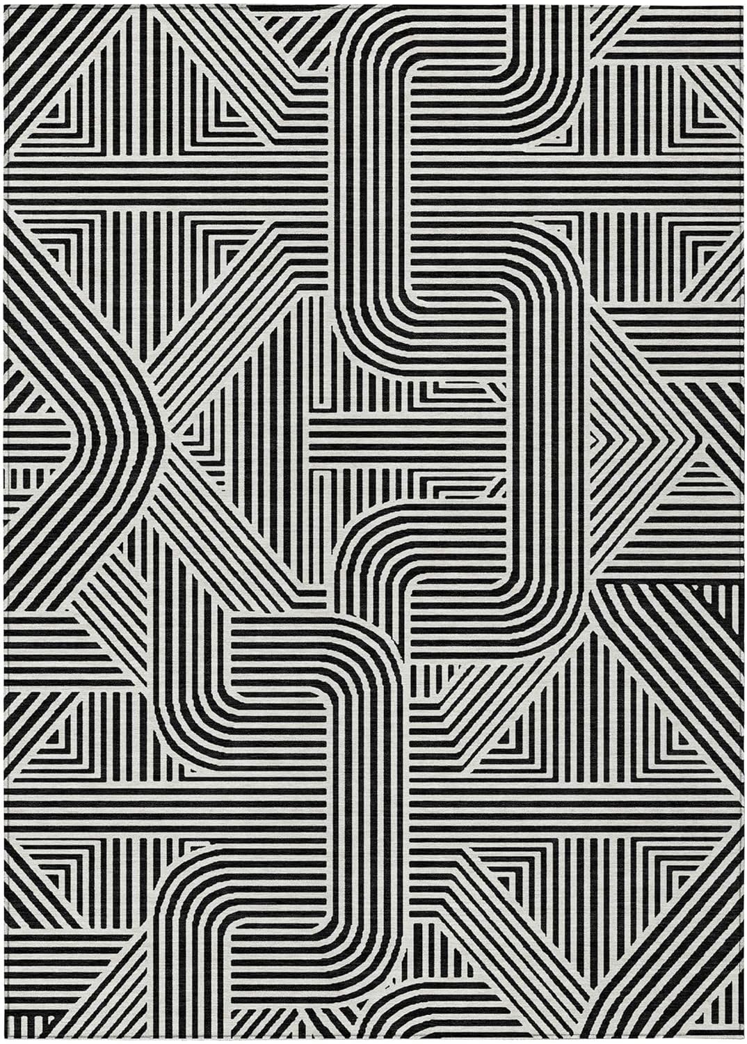Step up your home decor with our area rug, where small paths and transitional lines create a modern aesthetic. This rug is designed to complement any space, indoors or out, thanks to its UV stabilization. The ultra-thin construction and machine-washable feature make it a practical choice for homes with children and pets.