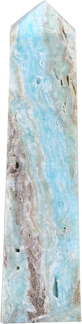 AMOYSTONE Large Crystal Geode Tower Blue Hemimorphite Pointed Wand Obelisk Healing Reiki, Chakra, Home Décor 1.7-2 LBS