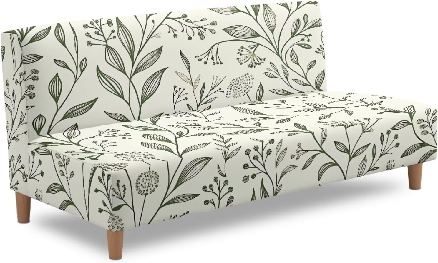 Material: Polyester & Spandex Fit Dimensions: Sofa length: 68 to 85 inches Sofa width: 23.5 to 31.5 inches Backrest height: 23.5 to 31.5 inches Sofa cushion thickness: 8 to 10 inches Package Includes: 1-piece x Armless Sofa Cover Elastic & Stretchable:Fits armless sofas with a sitting width between 68–85 inches for a secure, tailored fit. The elastic edge ensures the stretch futon slipcover stays in place, providing a snug fit without shifting Protect Your Furniture: Shields against scratches, spills, stains, and everyday wear and tear Chic & Stylish Design: One-piece armless sofa bed cover for a sleek, beautiful look. Ideal for futons and armless couches Machine Washable: Easy to care for with machine washable fabric for convenient cleaning long-lasting and Comfort: Made from stretchy, sturdy fabric for comfort and long-lasting use