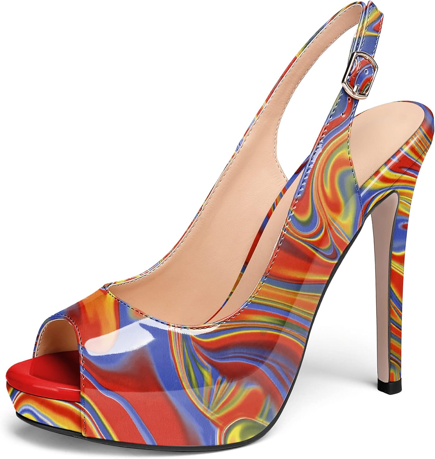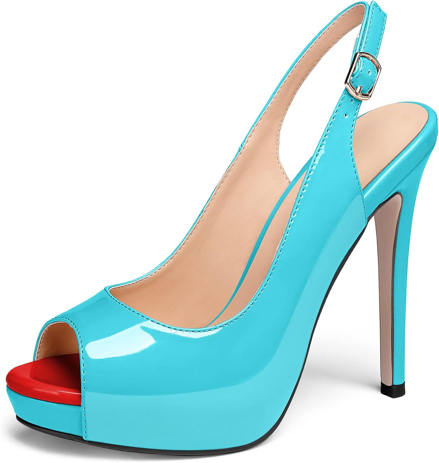 ★AUMOTED Women's Slingback Heel Pumps Dating Stilettos High Heel Pump Peep Toe Pumps Patent Platform Heels Heel Height: 4.72 Inches/ 12 CM Heel Type: Slingback Stilettos High Heel Pump Toe Type: Peep Toe Material: Soft and comfortable insloe. Strudy and Non-slip rubber outsole. Designed for a stable walking posture, providing cushioning, stability and support. Make sure your shoes can be used for a long time. Suitable for walking around all day. A must-have classic slingback stilettos high heel pump and platform pumps! Pairs perfectly with your jeans, dress, etc. Match Tips: Work/ Party/ Date/ Wedding/ Travel/ Office work/ Professional/ Performance/ Graduation. Good Gift: For women on Birthday, Anniversary, Mother's Day, Valentine's Day, Christmas Gifts, etc. After Service: Please let us know if there is any problems. We will solve it as soon as possible until you're satisfied. ★AUMOTED, your best choice.★