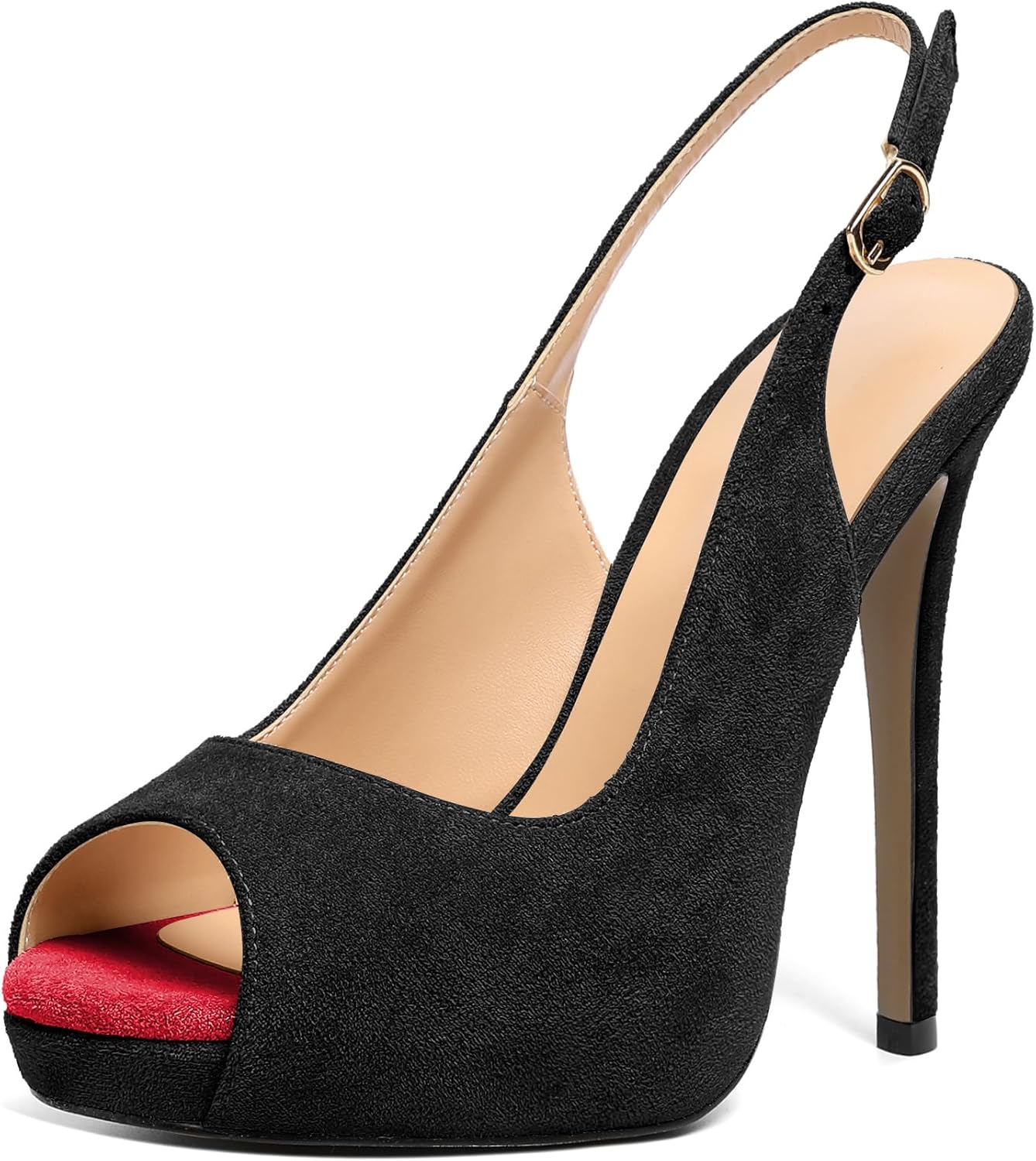• 【Fashion Platform Pumps 】 Classic elegant stilettos slingback heels platform high heel pumps can perfectly match all the clothes in your wardrobe, whether it's a clean suit shirt, casual T shirt shorts, or a sexy and sweet dress.Women in stiletto heel pumps are beautiful, smart and graceful. Especially in public, you show elegance and charm.