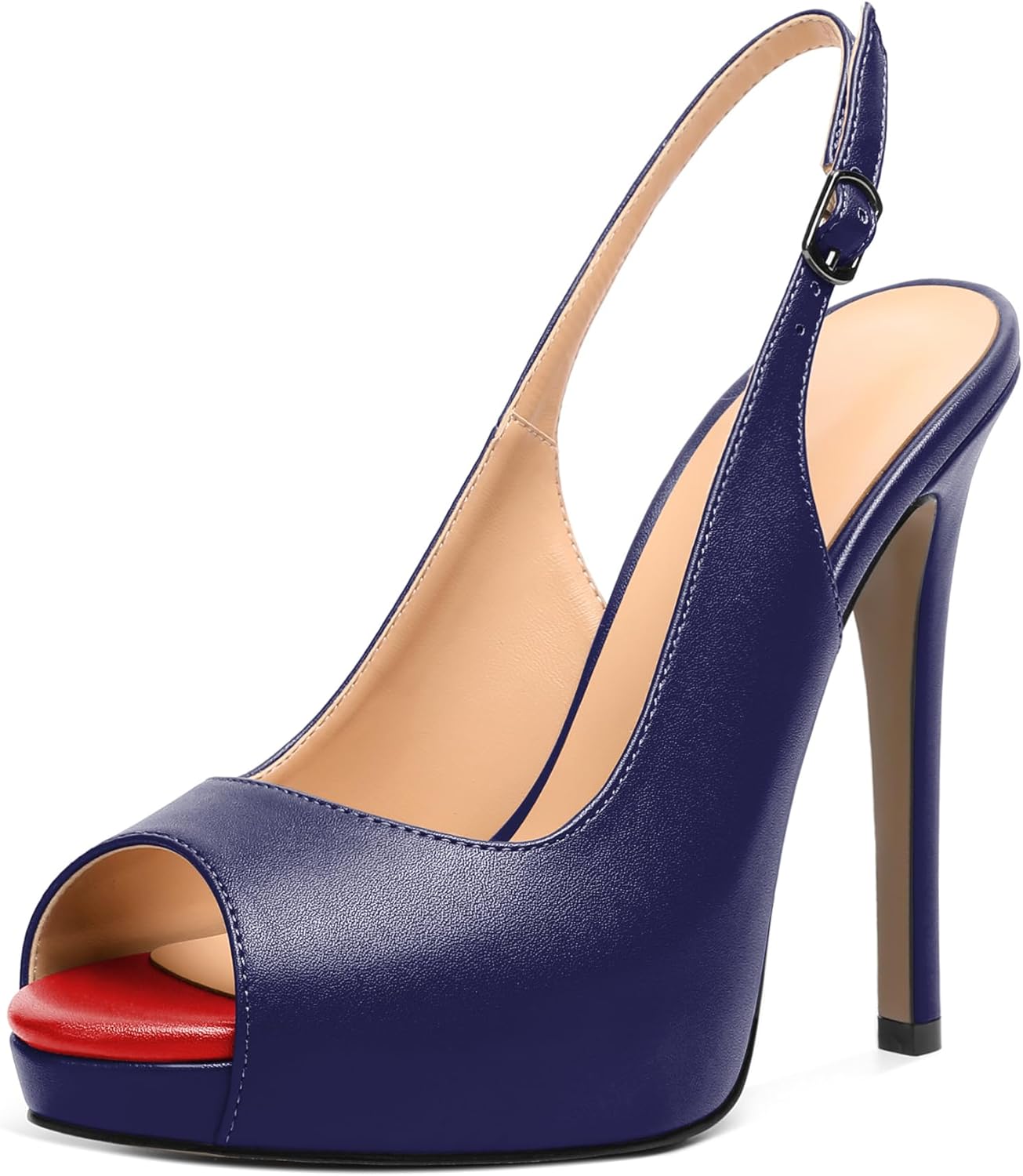 AUMOTED Women's High Heel Slingback Pumps Stilettos High Heels Patent Slingback Pumps Solid Peep Toe Platform Stilettos Pumps Dating Party Dress Shoes 4.7 Inch