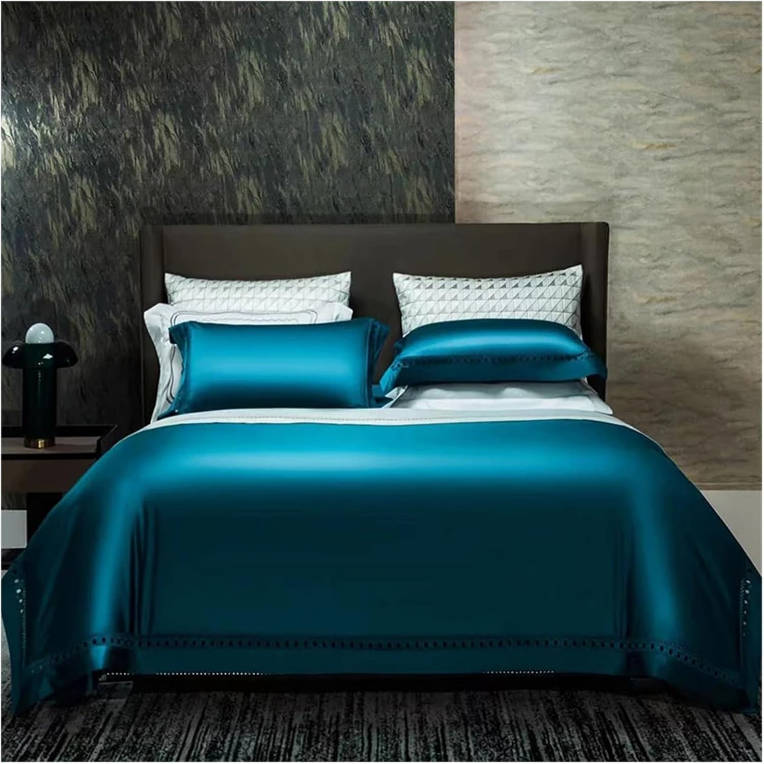 Queen size 200X230cm 4pcs1 pcs duvet cover:200*230cm (78.7*90.6 inch );1 pcs flat bed sheet:245*250cm (96.5*98.4 inch);2 pcs pillowcase:48*74cm (18.9*29.1 inch);King size 220X240cm 4pcs1 piece Duvet Cover: 220*240cm(87*94inches)1 piece Bedsheet:245*270(96*106inches)2 pieces Pillowcases:48*74cm(19*30inches)