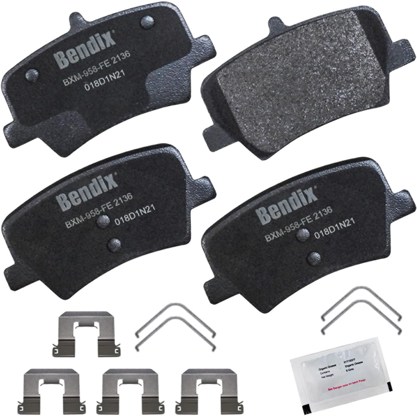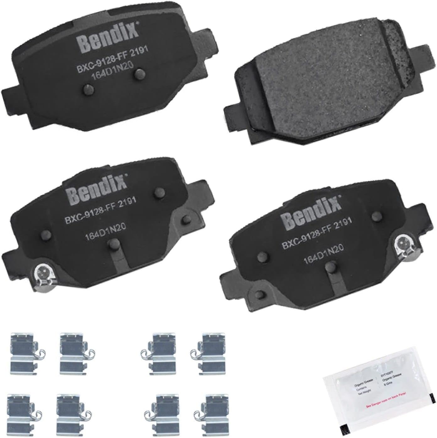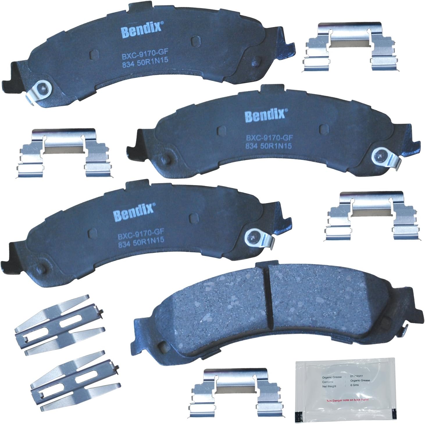 Bendix Priority 1 Ceramic Brake Pads Set with Installation Hardware. These brake pads are engineered and designed to meet all OE specifications for fit, form, and function while providing safe, consistent, and reliable stopping performance. With specific shims, slots, and chamfers, the pads provide not only a precise fit but also an ultra-quiet braking experience.