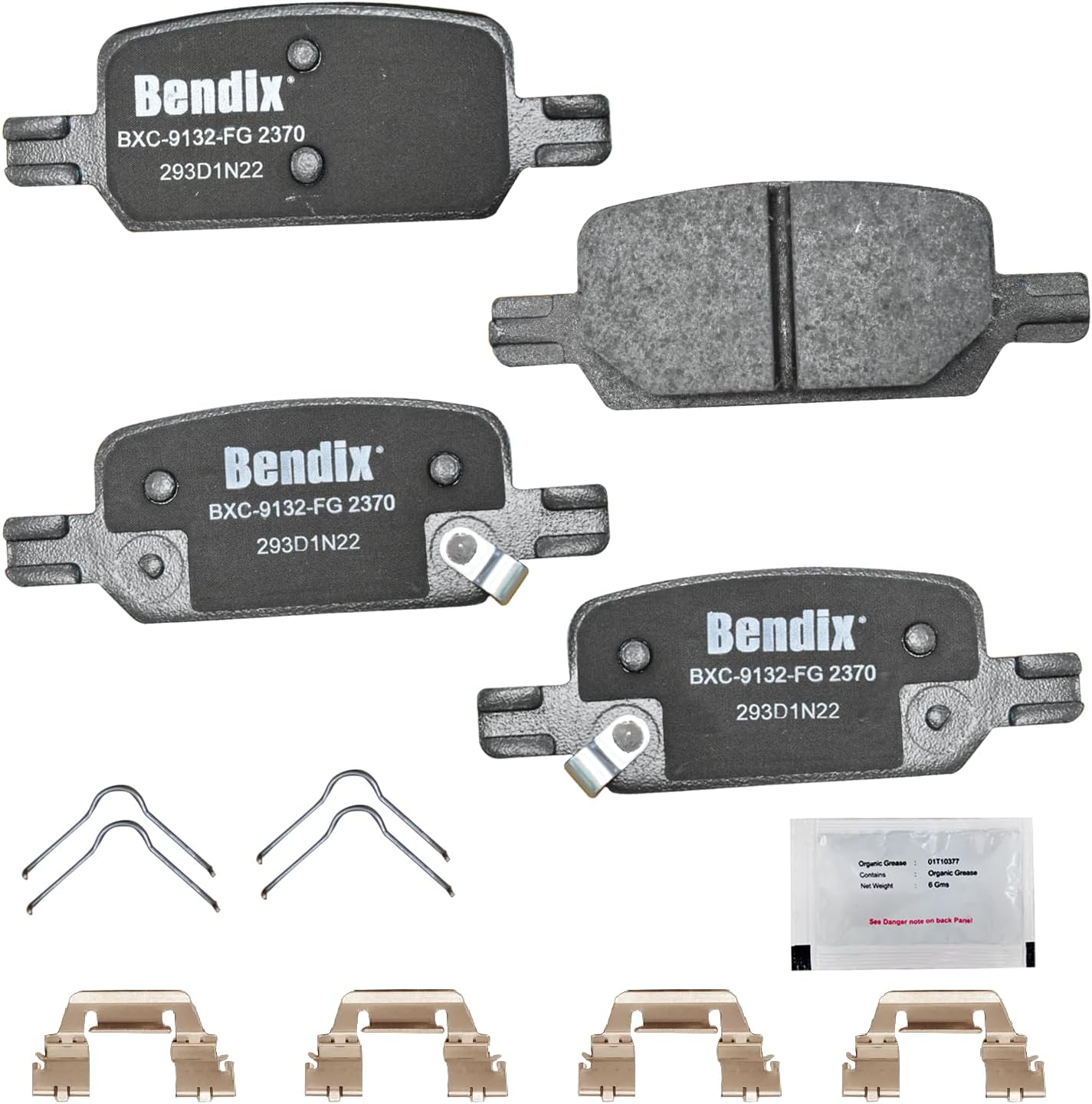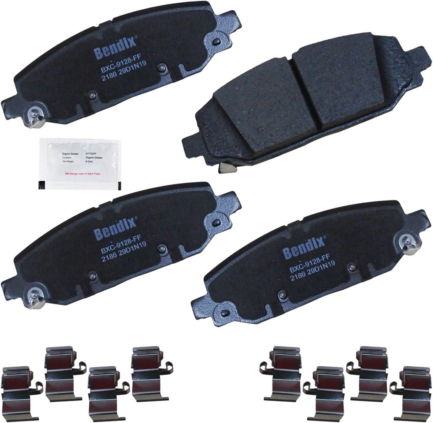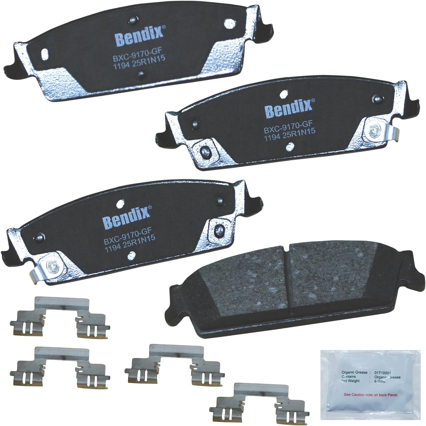 Bendix Priority 1 Ceramic Brake Pads Set with Installation Hardware. These brake pads are engineered and designed to meet all OE specifications for fit, form, and function while providing safe, consistent, and reliable stopping performance. With specific shims, slots, and chamfers, the pads provide not only a precise fit but also an ultra-quiet braking experience.