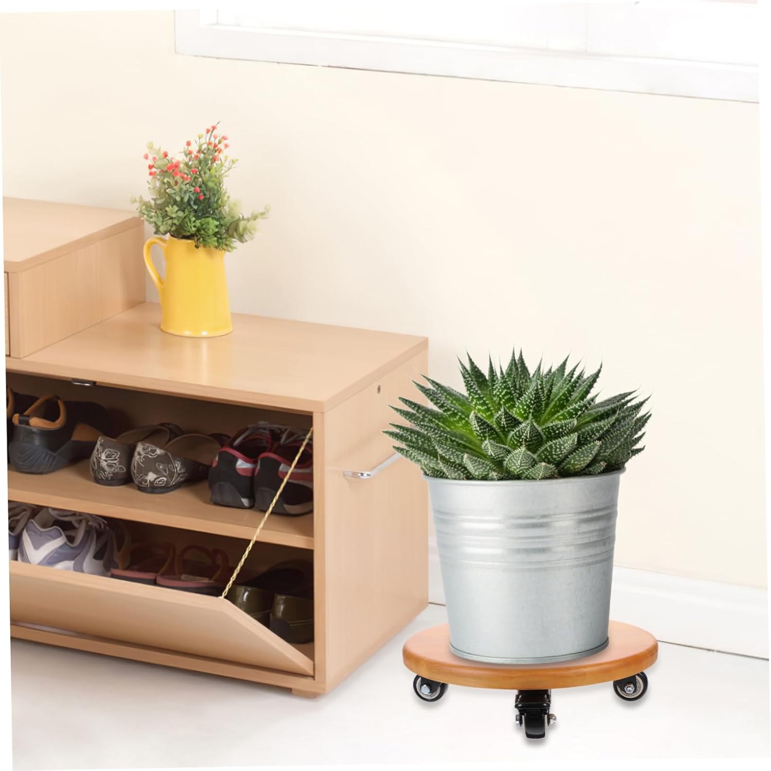 Package Include 1 x flower pot Characteristics -Color:Orange Movable plant stand -Size:28.00X28.00X7.50cm/11.00X11.00X2.95in Universal Wheel Tray -Material: Rubber and wood Plant Stand with Wheels. - It comes with a sturdy structure, designed with supporting points to make the flower pot stand stably pot trolley. - Perfectly work as a display stand for plant pots indoor garden, room and corridors flower pot. - The flower pot stand is made of good wood and rubber, and the plant stand is sturdy and durable flower pot holder. - The simple appearance is suitable for a variety of , also a nice decor Universal Wheel Flowerpot Tray. - To show your style, you can put indoor flowerpots, small aquatic fish tanks. The plant pot is easy to assemble and sturdy roll, even with a heavy plant. Good helpers for you Flowerpot Holder.Goods Informationpot trolley Lightweight and compact design and simple color make them look beautiful, suitable for holding bonsai and other flowers, adding more beauty to your space.Bonsai Moving Tray The flower pot stand is made of rubber and wood material is well-made and sturdy, and its simple appearances fits for many plants
