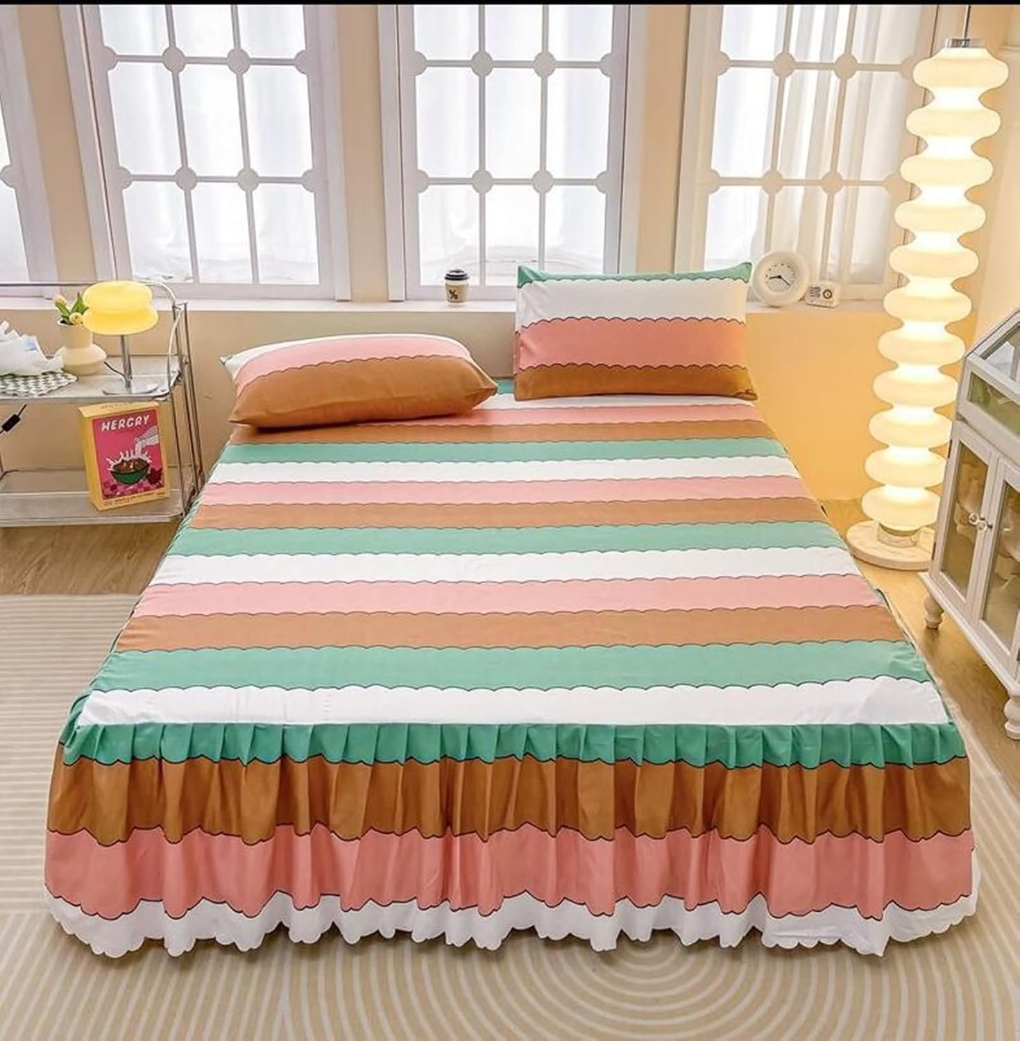 Including Bed Skirt x 1pcs; Bed Skirt Size: 120x200cmFarbic: PolyesterOur bed sheets feature elastic for the corners to hug your mattress securely! They fits standard size mattress.Our bed sheets are soft, breathability, durability and lasting quality.Our bed sheets are conveniently machine washable. However, to keep wrinkles at bay, promptly remove the sheets from the dryer or iron them.