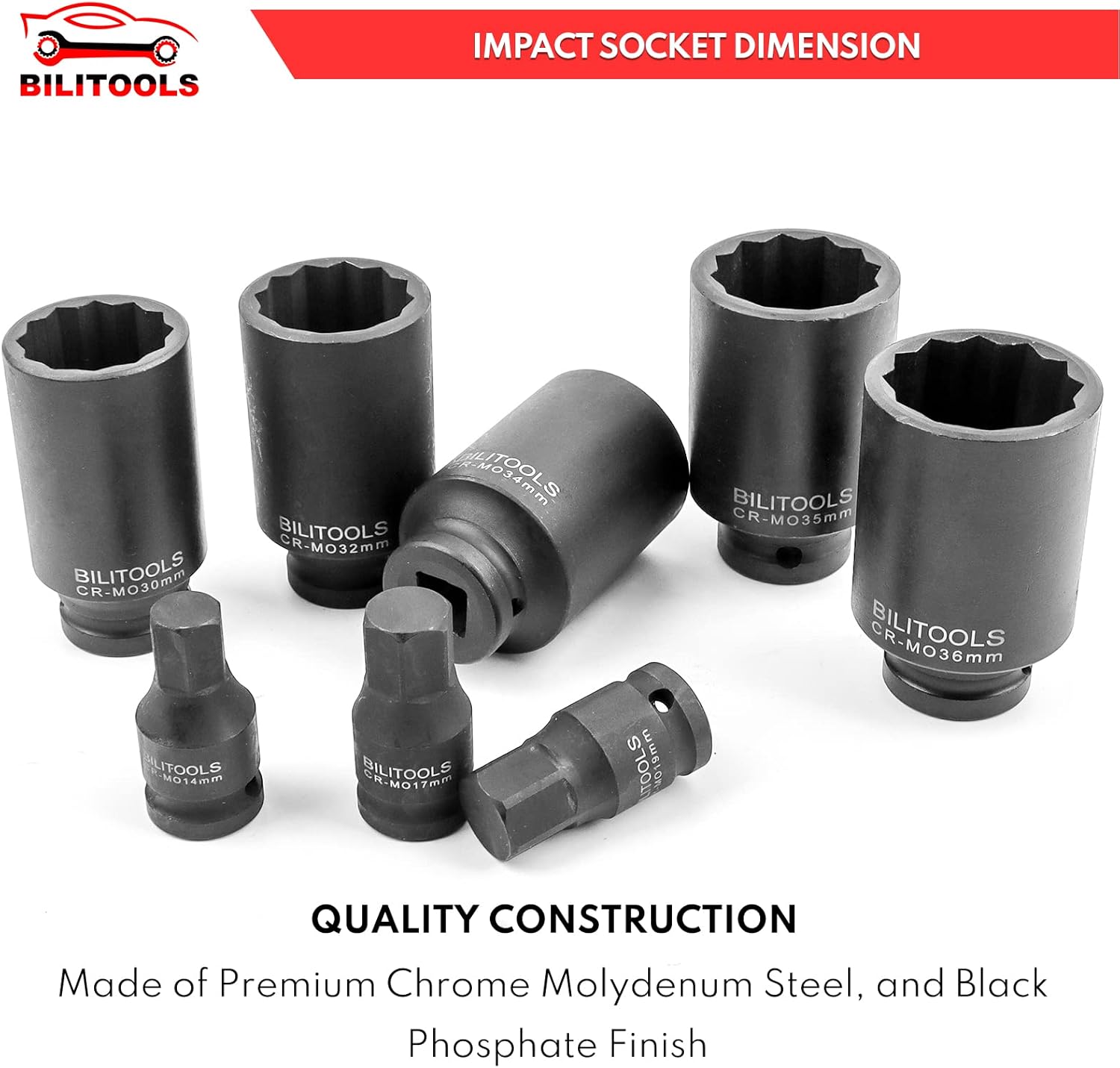 • ncluding 12-point socket, 12.5 mm (1/2") drive: 30 - 32 - 34 - 35 - 36 mm; bit sockets, 12.5 mm (1/2") drive, internal hexagon: 14 - 17 - 19 mm Ideal for heavy duty use in removing and installing of bihexagonal nuts on axle shafts and hexagonal profiles in cardan shaft.