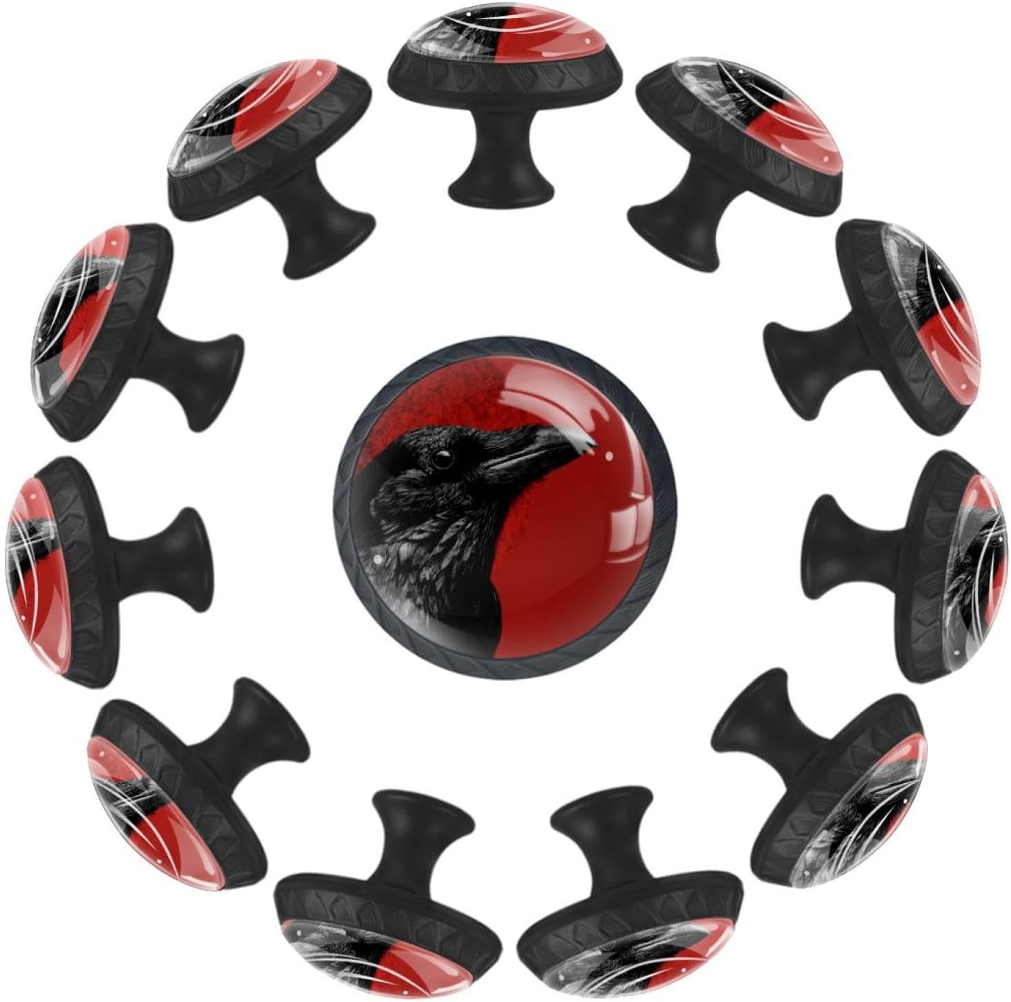 Black Base Crow Glass Cabinet Pulls, Decorative Drawer Knobs for Kitchen and Bedroom