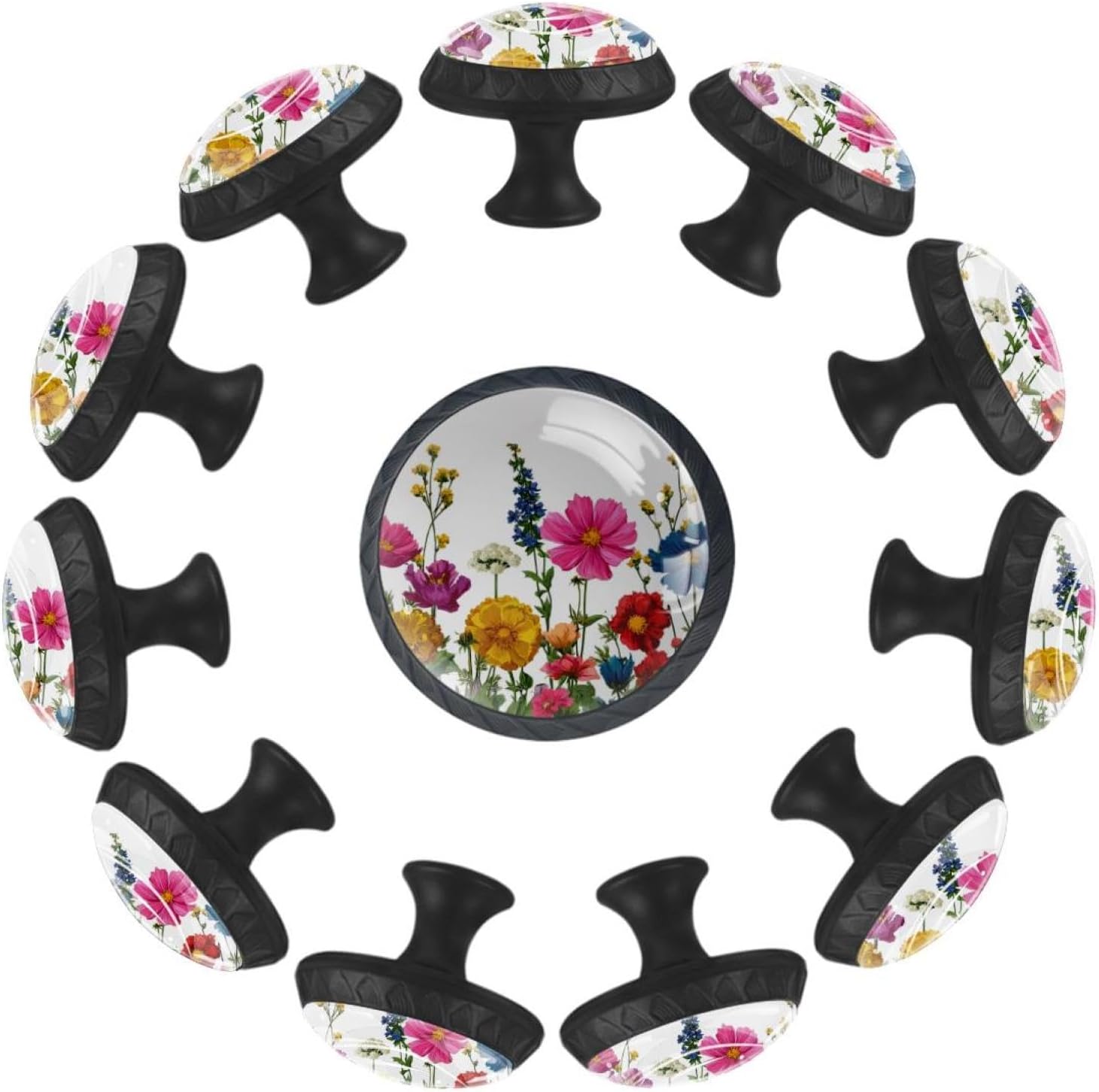 Upgrade your home decor with LORVIES Decorative Cabinet Knobs, Drawer Knobs, Cabinet Pulls & Drawer Pulls.Make them part of your home decor!These cabinet hardware & furniture knobs are the perfect size for your cabinets and drawers.The elegant and unique design, featuring diverse decorative patterns, adds a touch of sophistication to your cabinets.Not only are these kitchen cabinet knobs & bathroom drawer knobs functional, but they also elevate the style of any space.Whether it's your living room, kitchen, bedroom, or bathroom, these dresser knobs, wardrobe knobs & cupboard knobs are versatile and complement various decor styles. Product Information Material: ABS, Glass, Stainless Steel, Paper Size: 1.37" (Length) x 0.66" (Width) x 1.1" (Height) Weight: 0.28 Pounds / 0.13KG Base Color: Black Shape: Round with pattern edge Package Include: 12 x Cabinet knobs, 24 x Screws (Short x 12: 1.1" & Long x 12: 1.37") Notice ! ! ! Please measure and confirm the size of cabinet knobs & drawer knobs you need before purchasing. Please be careful when drilling holes. Manual measurements may be slightly inaccurate. Because of each computer display different colors may be related to physical and picture, hope to understand. LORVIES Service Provide you with a worry-free shopping, thank you! Any problems, please feel free to find up to us, we will try our best to help you solve your problems. Customer service time: Monday to Friday (9.00am-6:00pm) (GMT+8)(Due to the time difference, please allow us 24 business hours to get back to you. Thank you!)