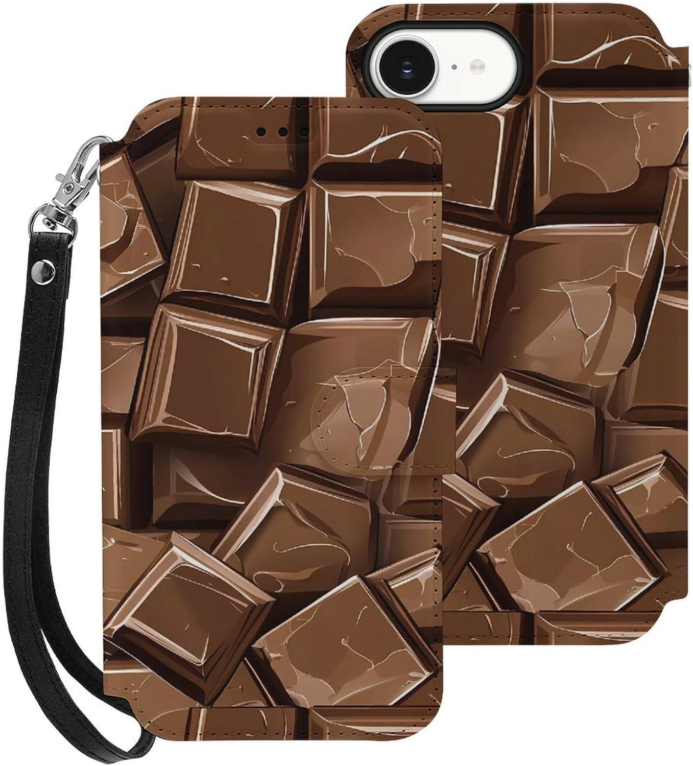 Brown Chocolates Compatible with iPhone 16/16 Plus/16 Pro/16 Pro Max/16 E Case Phone Wallet Card Holder Flip Cover with Wrist Strap