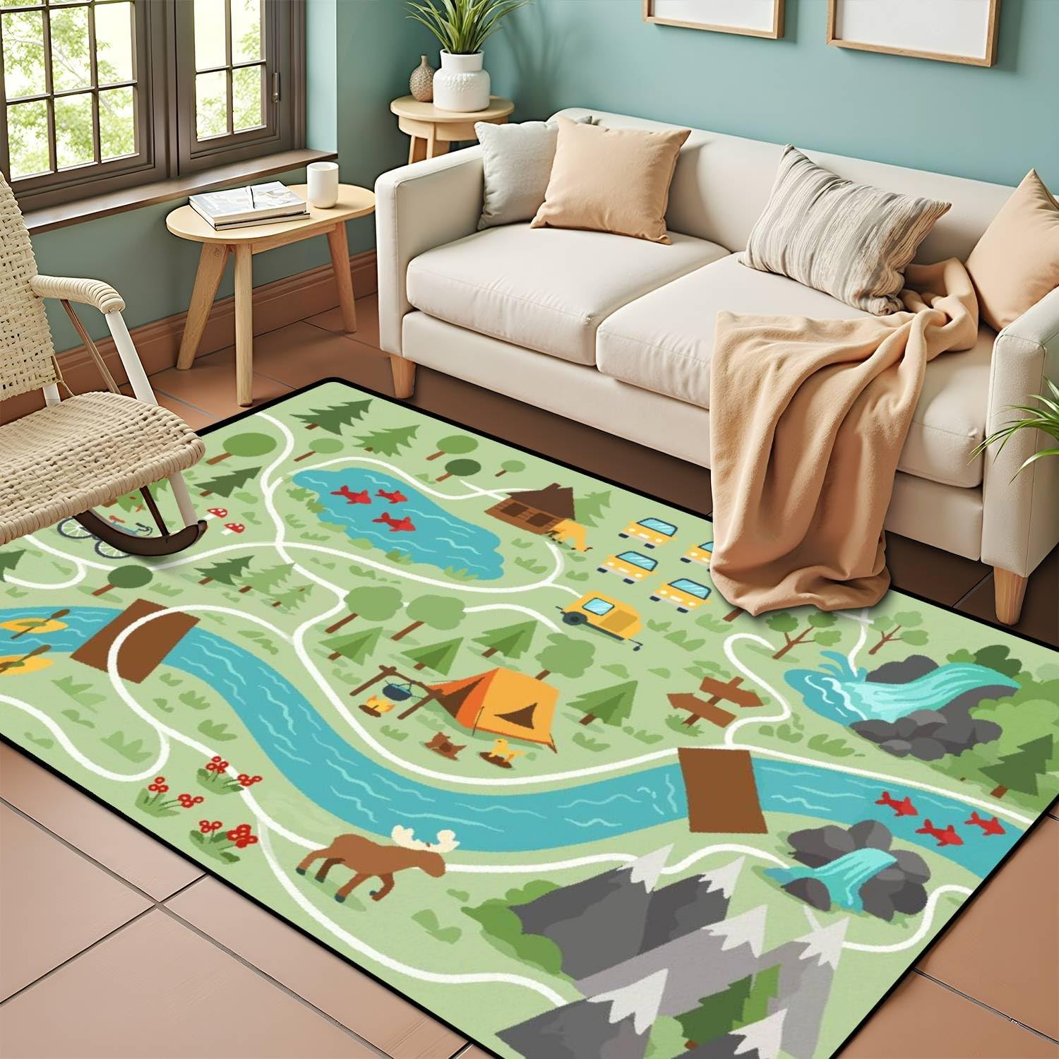 About Us-PeeNoke aims to discover delights in life and transform the inspiration to you.Large Size-6x9 ft (W x L ). Customizable. You can contact us if you need other sizes.Fits Into a Range of Styles-contemporary, farmhouse, coastal, rustic, casual, and transitional.Soft & Durable-Completed with a non-slip rubber back, the rugs that grip onto floors for optimal skid resistance, safe and soft for the comfort of your kids, while the stain resistant nature of results in durability and longevity, serving you for years to come.Multi Usage-Create a comfy landing spot in bedroom living room kitchen any space with this beautiful rug.-The area rug is mainly used in the living room, dining room, bedroom, playroom, kids rooms. It can be a creative house decoration in Halloween/Christmas/Thanksgiving/Easter, ect. It's also a good choice as a holiday or housewarming gift.Note:-Due to the size limits of the courier, we have to fold it before shipping. Please don't worry, use your hand to gently smooth them out, flatten them on the floor and walk around, the creases will relax within a week.-Due to the differences of displays, there may be a slight color deviation between the actual color and pictures you see. We keep them as true to life as much as possible.-Due to the manual measurement and different measurement methods, please allow 1-3cm deviation.
