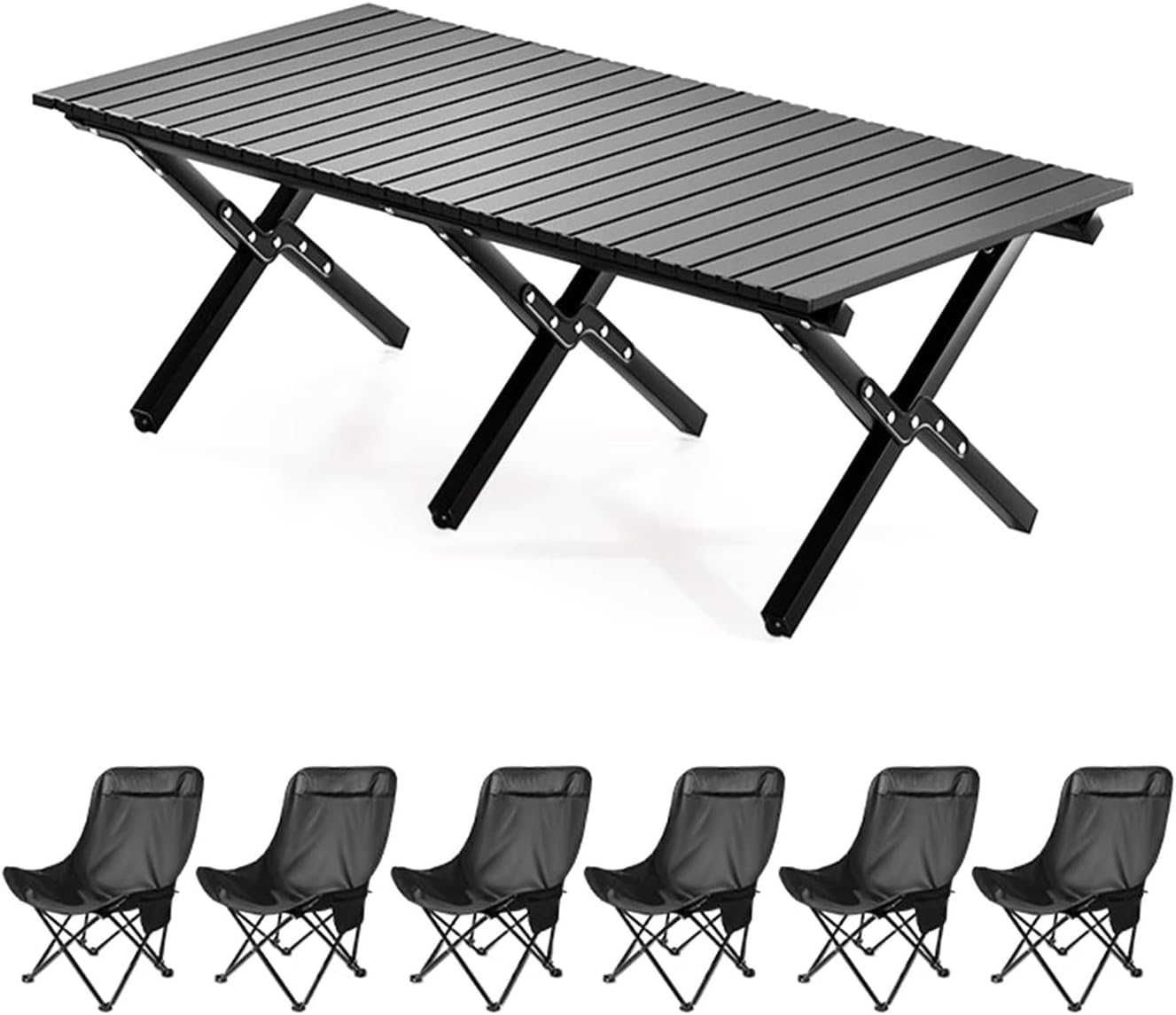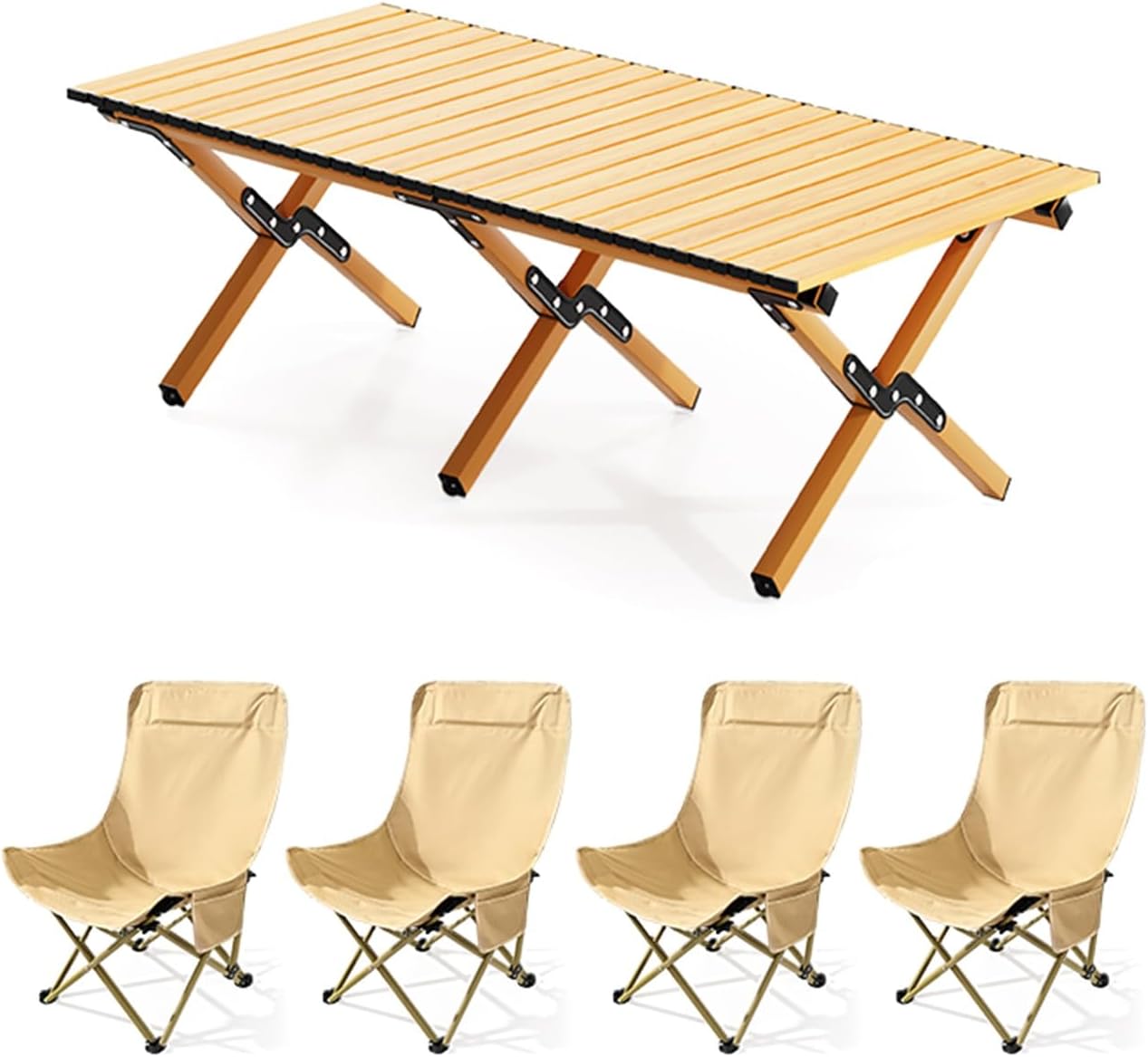 Welcome to my shop~This foldable camping table is made of thickened carbon steel, with a natural wood grain finish. Its thickened legs, triangular fork structure, and thickened fixings make it stable, durable, and strong, making it a perfect companion for outdoor camping.The spacious tabletop offers convenient storage, and reinforced buckles prevent the tabletop from shaking. Its egg-roll-like folding design allows for quick assembly and storage, making it suitable for a variety of occasions and a practical item.- Name: Outdoor Folding Table and Chair Set- Color: Wood Grain, Black- Material: Carbon Steel, Oxford Cloth- Table Dimensions: 85*60*46cm/33.5*23.6*18.1in, 115*60*46cm/45.3*23.6*18.1in, 145*70*46cm/57*27.6*18.1in- Chair Dimensions: 47*47*66cm/18.5*18.5*26in- Suitable for a variety of outdoor occasions: camping, picnics, family outings, garden parties, RV vacations, hiking, fishing, barbecues, travel, and parks.- Includes: Folding camp chairs, folding table, and carrying/storage bag.Safety Warning: When used outdoors, the chairs must not exceed a weight limit of 100kg, and the table must not exceed a weight limit of 75kg. Please ensure the table is properly installed and secured.
