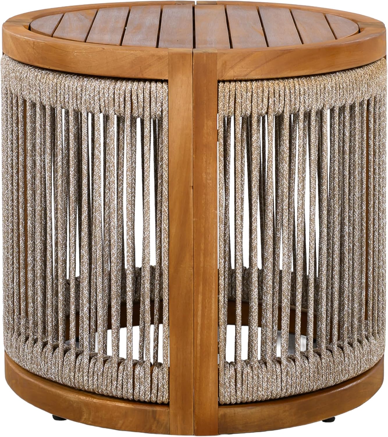 | Item Type Name | 3 Pieces Conversation Set, Acacia Wood Chat Set, Round Coffee Table and Woven Rope Accent Chairs, Slat Design Patio Furniture Set for Backyard Garden |