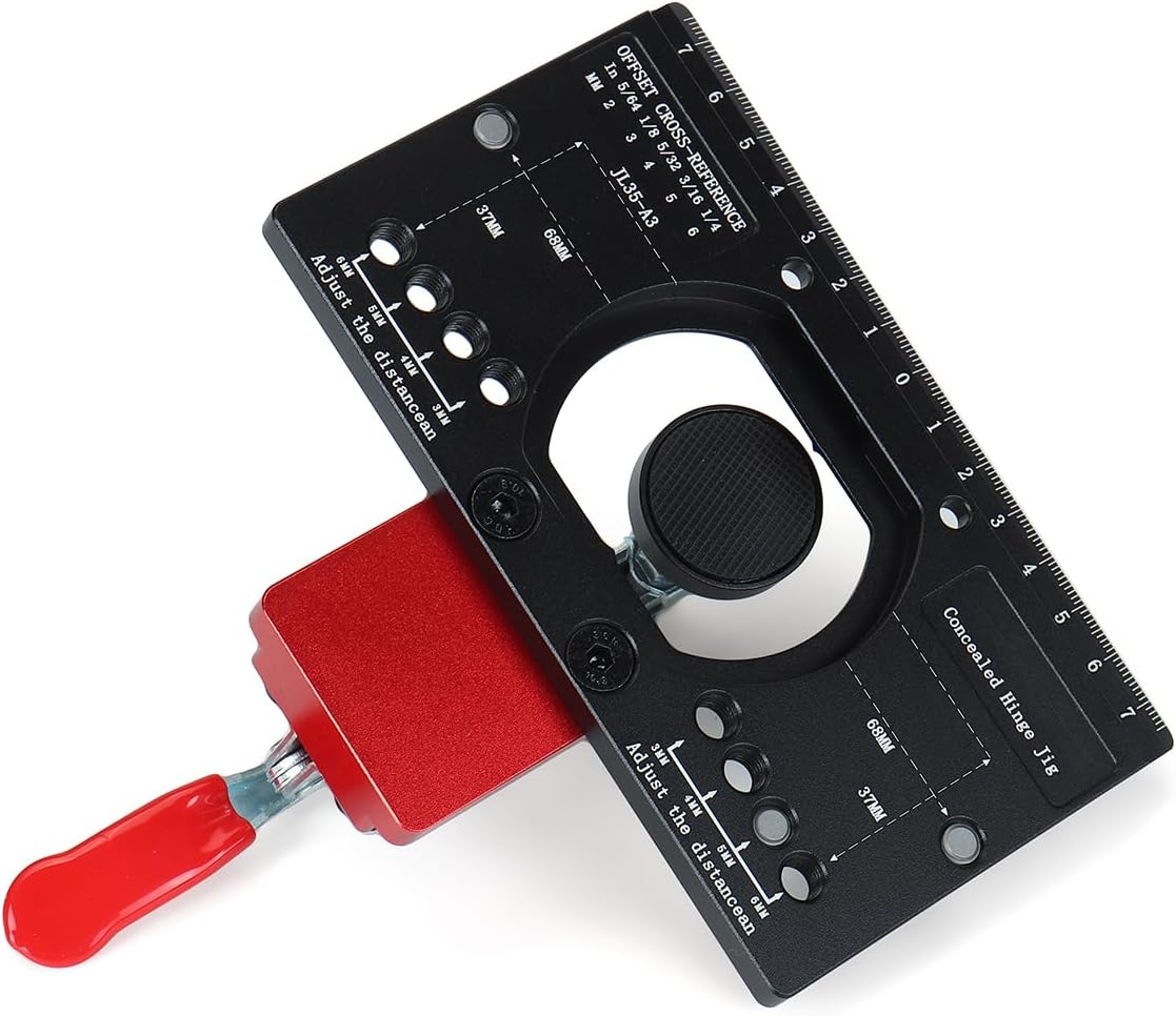 Xiangtat provides high quality tools all the time and create more and more helpful and durable tools for DIYer, home owner and professional wood worker. Xiangtat 35mm hinge jig pro max is made of all metal and built-in bearing drill guide is durable to use and easy to drill accurate hinge holes instead of drill press. Including quick clamp on the jig help you clamp on the workpiece fast without any other clamps. The concealed hinge jig with1-3/8 Inch dust collection adapter is suitable for most of dust collector makes workshop and house clean during drilling. Including 2/3/4/5/6mm offset and 42*11, 48*6, 52*5.5, 45*9.5mm hinge screw hole drill guide. The carbide tipped 35mm drill bit provide clean and sharp drilling performance.