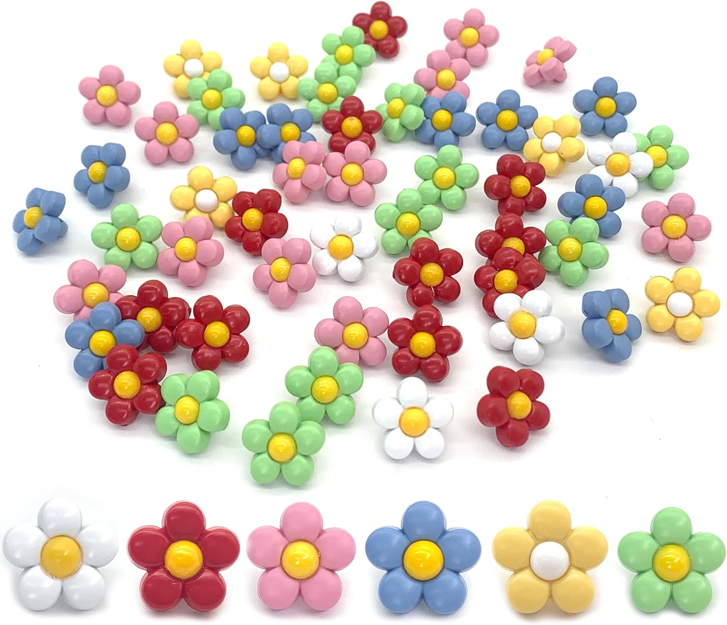 "1. This colorful button is carved with exquisite craftsmanship in every detail. The petals and stamens are realistic. The surface is smooth and has no sharp angles and will not fade after multiple washes; It is specially made for shirts, sweaters, cardigans and other spring and summer clothes, and is a decorative accessory of children's clothing. 2. It has the shape of cute cartoon flowers, each of which is endowed with rich colors, from elegant light pink to vibrant green, as beautiful as a spring garden, instantly injecting vitality into clothes. 3. Colorful flower buttons are easy to use, can be used for both button replacement and craft making. 4. Small fresh flower buttons are often used to sew clothes, decorate clothes and bags, scarves, skirts, etc. It can also be used for sewing, accessories, crafts, gift making, etc. Product Information: Material: plastic. Color: white, yellow, light green, pink, blue, purple Size: 0.74in/19.0mm Delivery scope: Quantity: 48 x coloured flower buttons. Note: There may be slight chromatic aberration due to the influence of shooting light and screen. "