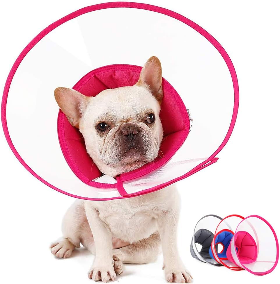 Specifications:Material: Oxford cloth, PP plasticColor: Blue, Red ,GreySize:S: Neck: 5.1"- 5.9" Depth: 5.3" inch Diameter: 7.1"-8.3"M: Neck: 6.3"- 7.9" Depth: 6.5" inch Diameter: 7.9"-10.6"L: Neck: 8.3"- 10.2" Depth: 7.3" inch Diameter: 9.4"-12.2"XL: Neck: 10.6"- 14.2" Depth: 8.9" inch Diameter: 12.6"-15.7"How to properly determine size:To find the right size collar, you will need TWO measurements1.Neck circumference: Use a soft tape measure or piece of string and wrap it snugly around the base of your dog’s neck--snug enough so that you cannot fit any fingers under the measuring tape.2.Depth: The length from the your pet's neck to the snout.If any of the measurements are between two sizes, choose the larger size.Feature:1.Durable and sturdy material make it more safty and practical, transparent white color make it be clear and easy see-through2.Extended length then similar e-collar, we can ensure it will be long enough to keep pet from licking scratching their wound.3.Soft edge for additional comfort and protection,no need to worry about hurting your pet's neck4.Hollowed design making this collar more breathable and lightweight.offering fresh air all the time.Application:1.Anti-Scratch and Bite-resistant,great for recovery from injuries, rashes and post surgery2.Recommended using for beauty and medical care,like keep pet from licking in beauty grooming or bath clean.Package Including1 x pet recovery collar