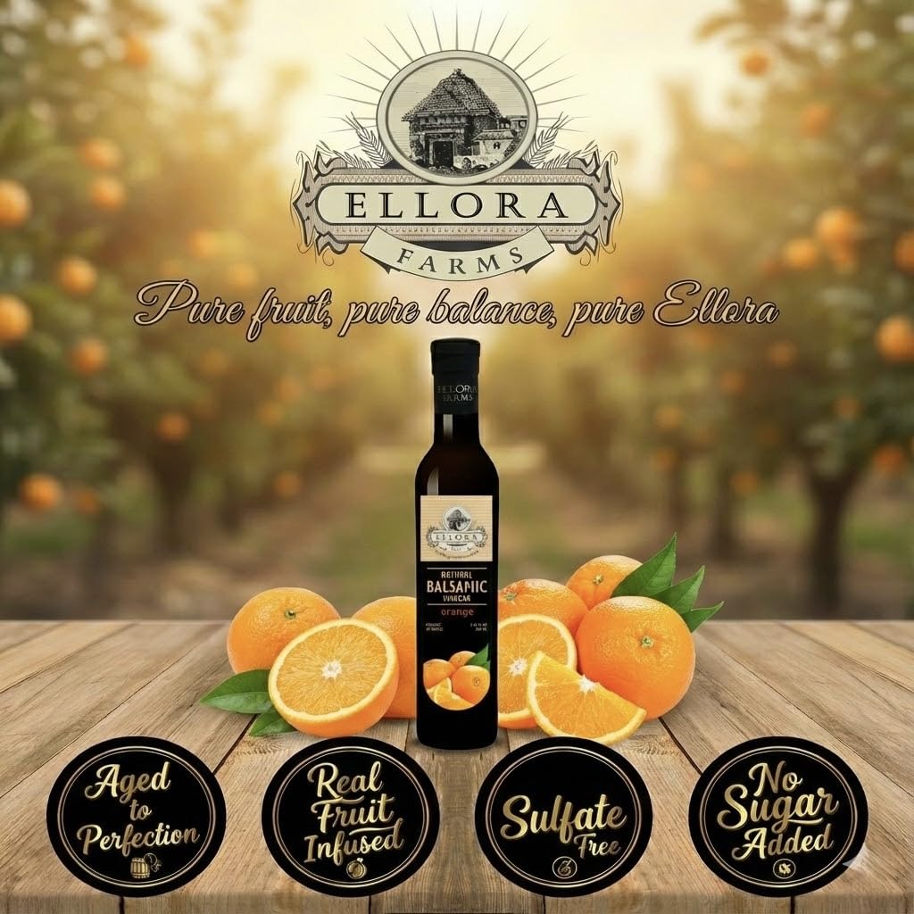 Combo Pack of Orange and Peach Infused Balsamic Vinegar Crème from Global Award Winning Brand Ellora Farms. All the Balsamic are crafted with years of research and are 100% Natural with no flavorings, no added sugars and no preservative. All the Balsamic contain actual fruit extracts or real fruit syrups and no flavorings or enhancers. Eat with Ellora Confidence for A Healthy Tomorrow, Today !