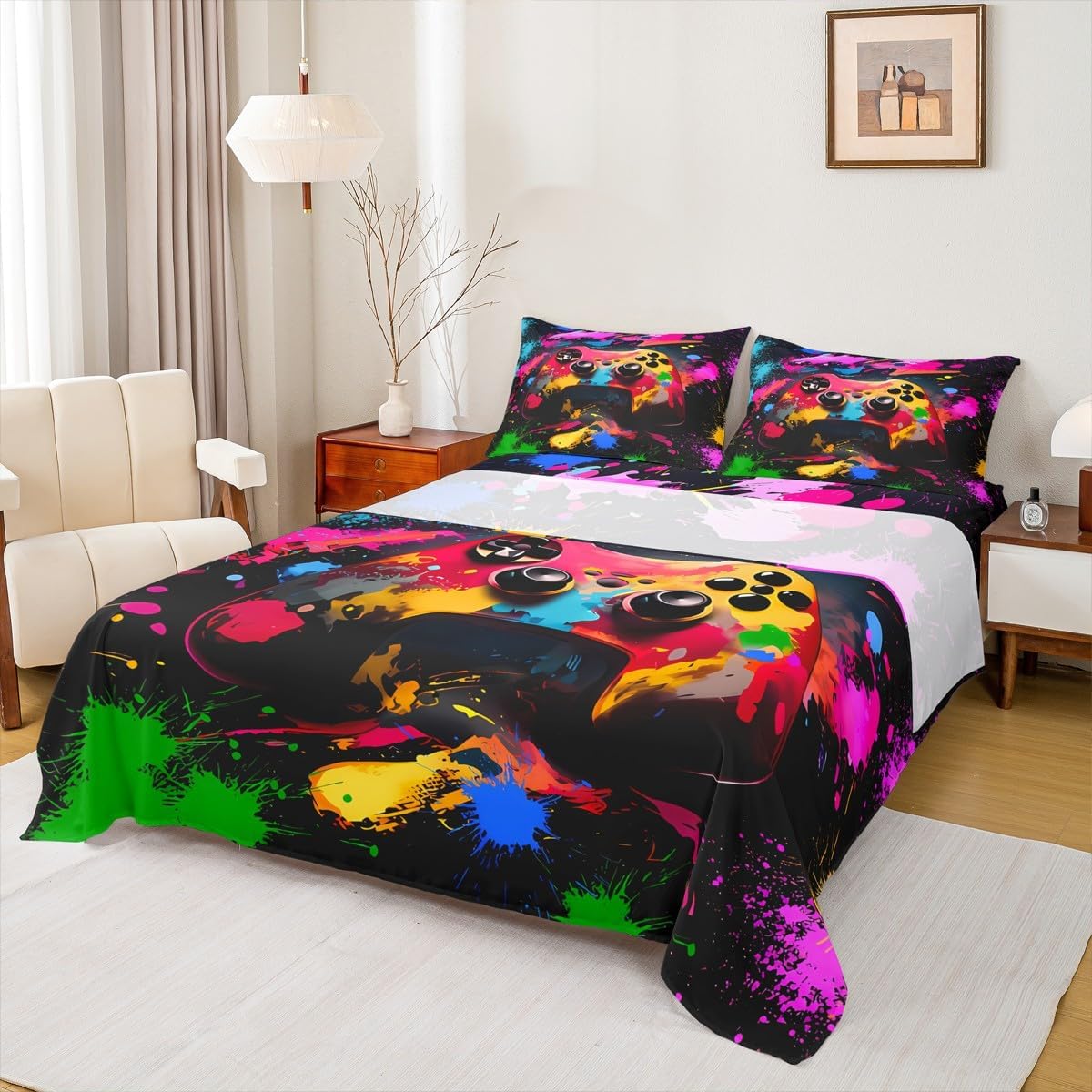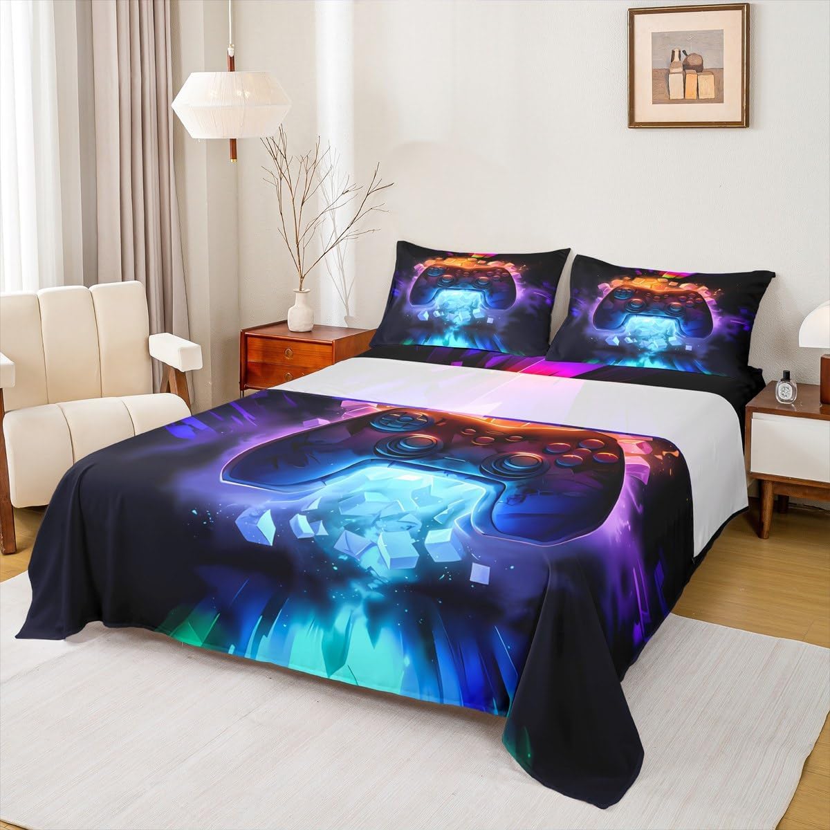 Welcome to our store. We have specialized in home textile for many years.We are committed to providing customers with comfortable products. Size Imformation Twin size: 1 Fitted Sheet (39"x75"x16"), 1 Flat Sheet (96"x66"), 1 Pillowcase (20"x30"). Full size: 1 Fitted Sheet (54"x75"x16"), 1 Flat Sheet (96"x81"), 2 Pillowcases (20"x30"). Queen size: 1 Fitted Sheet (60"x80"x16"), 1 Flat Sheet (102"x90"), 2 Pillowcases (20"x30"). King size: 1 Fitted Sheet (78"x80"x16"), 1 Flat Sheet (106"x90"), 2 Pillowcases (20"x36"). Versatility We have many kinds of styles for you to choose.You can easily find a product that suits the style of your room. The item is not only fits your home (bedroom, guest room, living room, etc) or RV, but also a present for holidays or anniversaries (Chiristmas, New Year, Halloween, Thanksgiving day, birthday) for people who you love (your families, friends, relatives, boyfriend,girlfriend). Modern Design The luxury aesthetic bedding sheets are made by reactive printing and dyeing process. The pattern is clear, the color is lasting and bright, which will not fade after repeated washing. No harmful chemicals or dye substance. Personalized As a manufacturer of digital printed home textiles, we follow current trends and bring you the latest and stylish home textile products. The item will make the room decorated in exquisite taste.