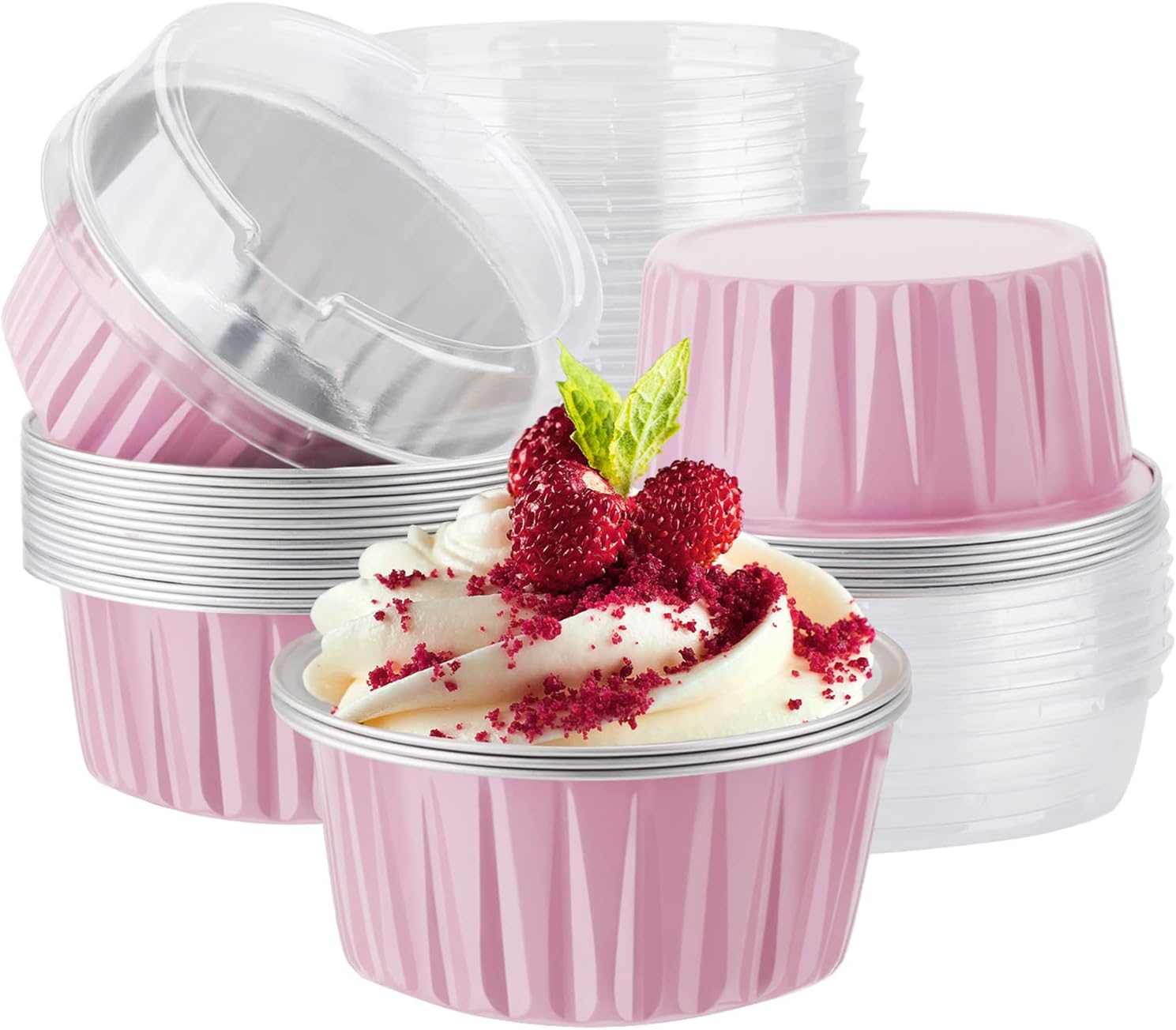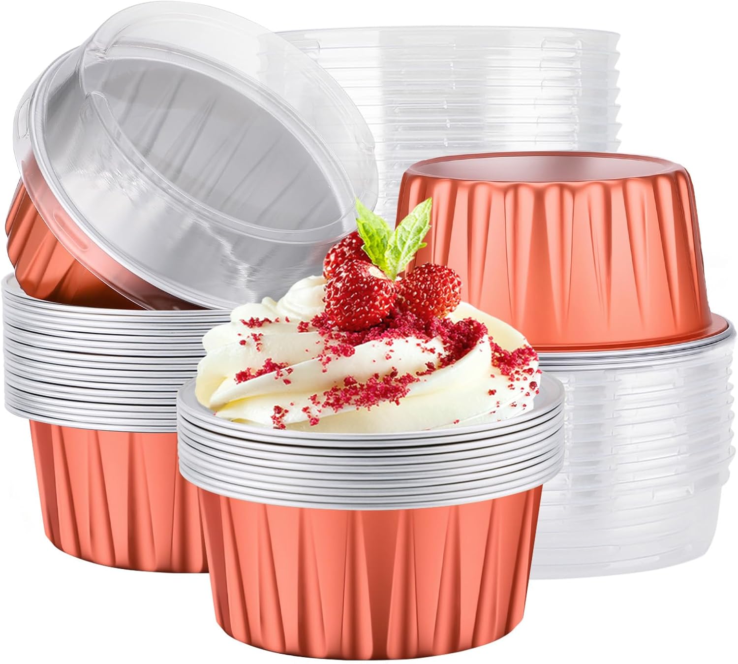 Material: Sturdy Aluminum Foil Color:Silver Volume: about 5.0 ounce(125ml) Size: Dimensions: ↔ Top Circle: 3.35" ↔ Bottom: 2.56" ↕ Height:2.16" Package List: 400pcs x Cups+400pcs x Lids