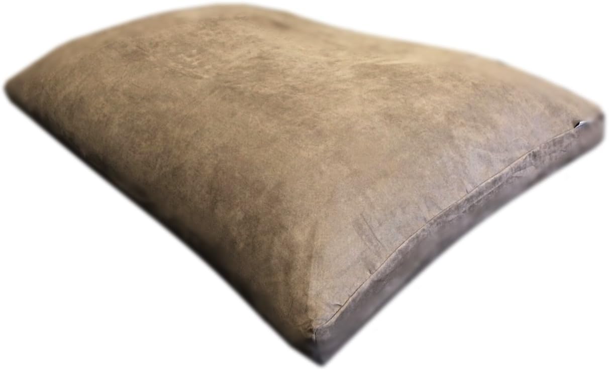 This large dog bed is designed with a mixed filling blend of shredded memory foam, micro foam, and soft poly fiber to provide balanced support and comfort. The bed measures 40 inches by 35 inches, suitable for large and extra large dogs. The external cover is made from standard 120gsm brown microsuede fabric with an anti-slip base featuring black textured dots to help reduce movement on smooth surfaces. An internal waterproof taffeta liner helps protect the foam filling from moisture. Each bed includes one internal waterproof cover, one external microsuede anti-slip cover, and one additional replacement cover for convenient maintenance. The zippered covers are removable for cleaning and can be machine washed and dried on low heat settings. The mixed foam construction is designed to retain its shape and provide long term durability. Color: Brown Material: Microsuede fabric, waterproof taffeta liner, mixed memory foam/poly fiber filling Size: 40" x 35" Included: 1 mixed memory foam bed, 1 internal liner, 2 external covers