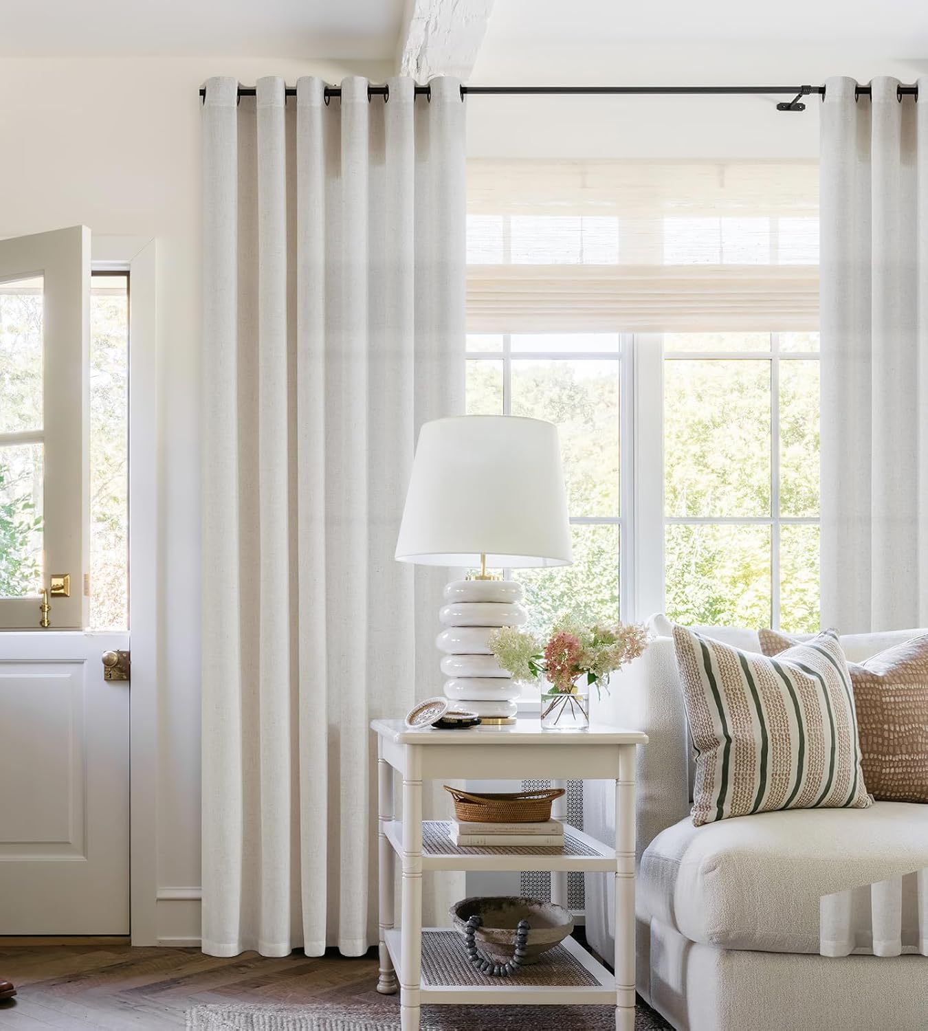 The natural linen blend curtain offers a classic and timeless look that effortlessly complements various home decor styles, including boho farmhouse, rustic, modern chic.