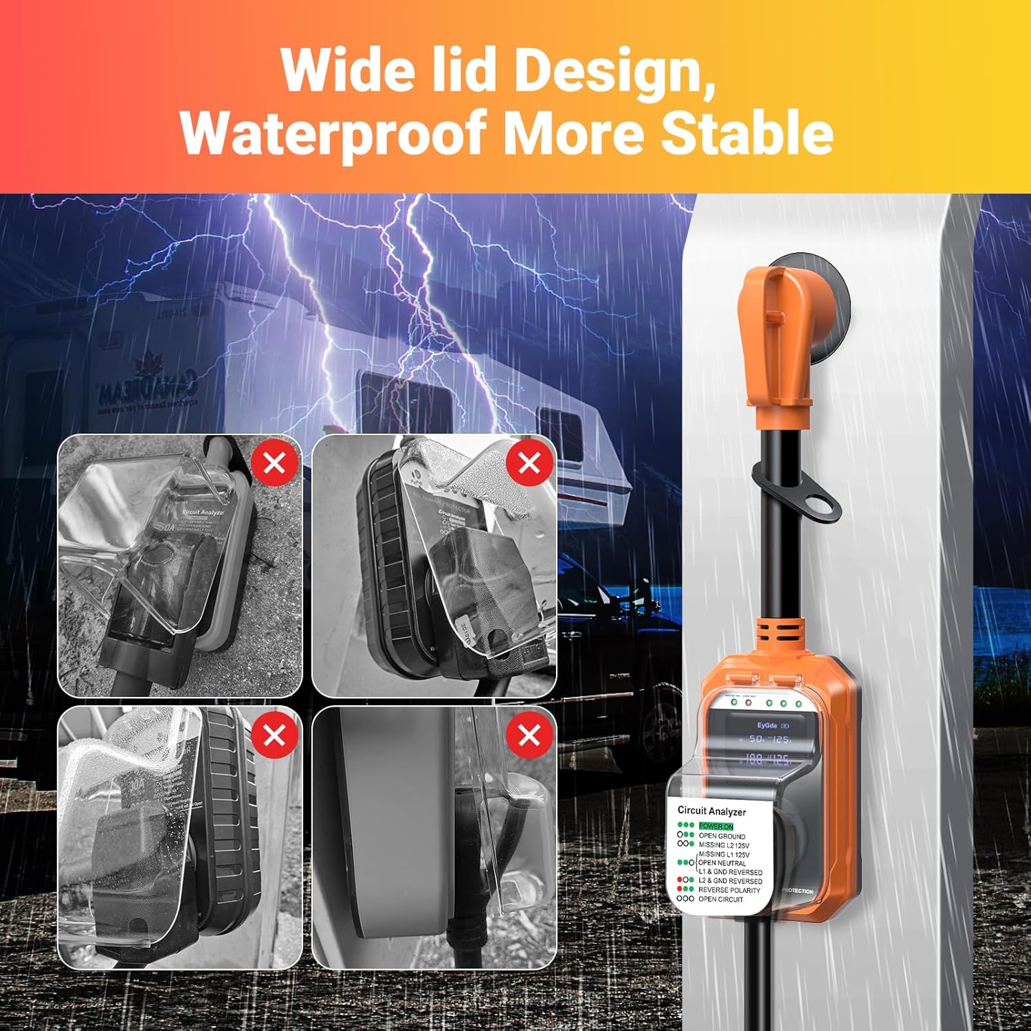 EyGde RV Surge Protector 50 Amp+ EyGde RV Surge Protector 50 Amp Waterproof Upgraded 50 Amp Surge Protectors for RV with Real Time KWH, Voltage Monitor Surge Protector for Camper Travel Trailer (Oran