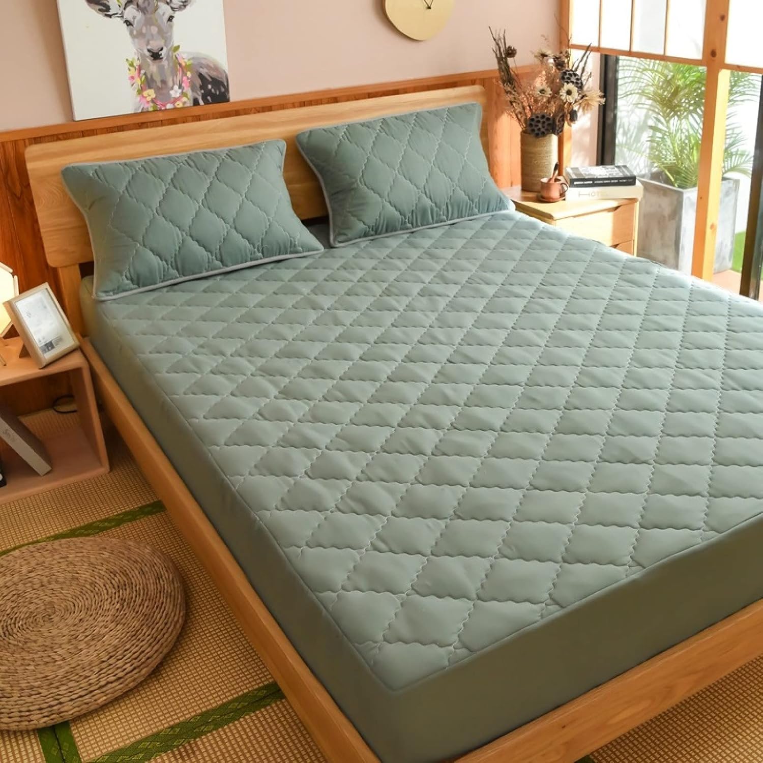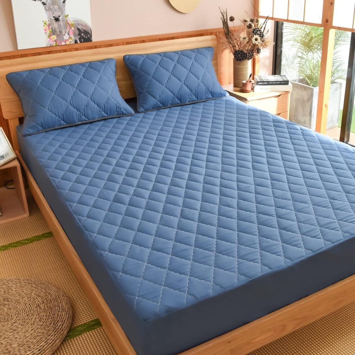 Material: quilted and waterproof. Soft and comfortable, 360° full surround. Suitable for mattresses within 30 cm. The package only contains 1 mattress protector and no other accessories. size: 120*200cm 150*200cm 180*200cm 200*220cm This sheet is durable. It will maintain its newness through many washes.The soft and sheet set can naturally wick moisture and ideal for all season use. Conveniently machine washable and dries quickly on tumble dry low. Do not bleach.