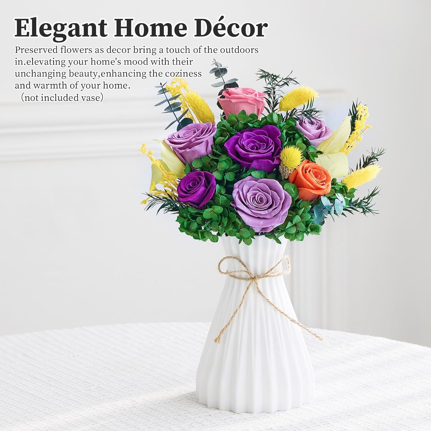 Special Gifts for Women:The roses and other flowers are natural and real, they are all natural flowers cut at the most beautiful moment and keep their original softness, shape and brightness, it is also carefully preserved with high quality technology to keep them fresh and beautiful and they are meticulously preserved at the peak of its bloom, maintaining their original shape and brightness at least 1 year.Preserved flowers are the perfect gift for any special occasion.