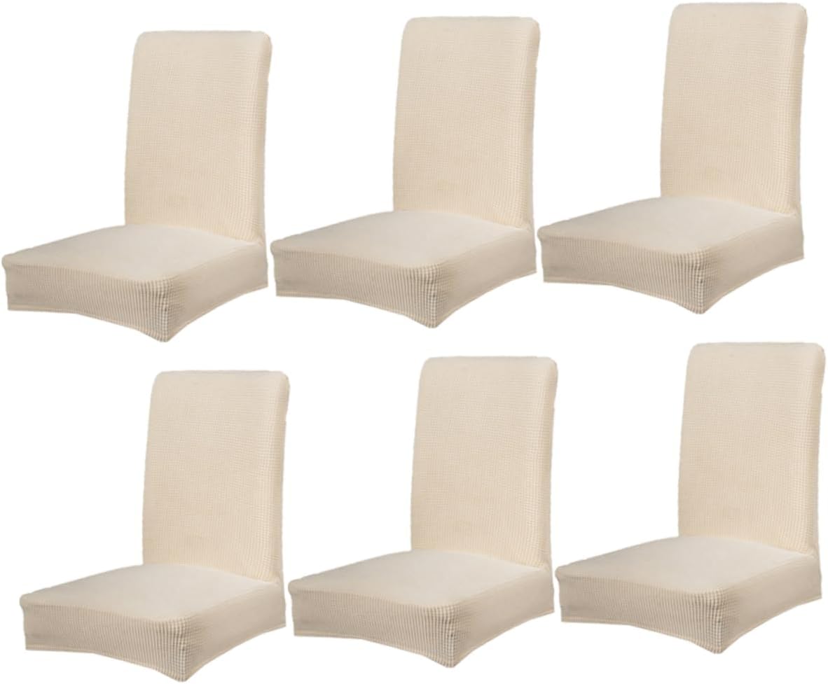 Package List 6 x chair covers Characteristics - Material: Polyester, spandex Chair Protector. - Size: 55x49x49cm Stretchy Chair Cover. - Color: grey Polyester Chair Cover. - Suitable for Chair Size: Thickness of chair back: within 10 cm; Chair Back Height: 46-55cm; Chair Back Width: 36-48 cm; Seat Length: 38-49cm; Seat Width 38-49cm. - Made of spandex and polyester, flexible enough for of chairs Elastic Cover. - Protect your chair , wet, scratch and etc Chair Case. - Easy to clean, washable, convenient to use, foldable to storage. - Suitable various occasions, wedding, banquet, party, meeting, ceremony, etc. - It is suitable for most of dining room chairs, stacking chairs, banquet chairs, folding chairs.Goods DescriptionElastic Cover Not only can protect your chair , wet and scratch, also can decorate your chair so well.Chair Case With simple design, comfortable, wrinkle resistant, machine washable, easy to wash.Stretchy Chair Cover This chair cover is made of spandex and polyester, flexible enough for of chairs