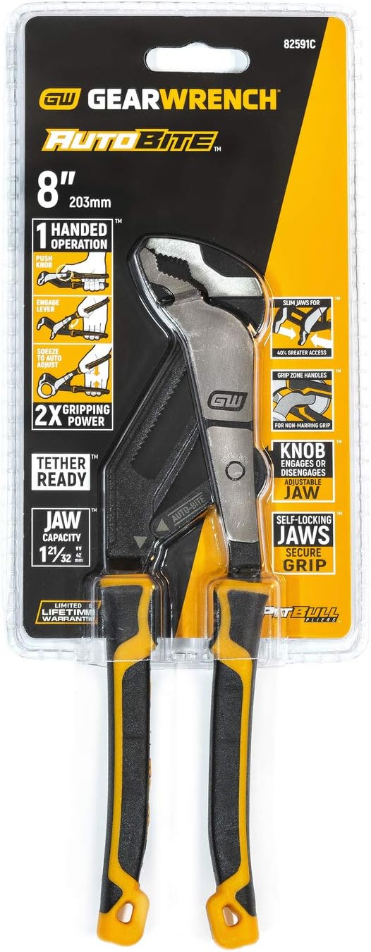 GEARWRENCH 8" Pitbull Auto-Bite Tongue & Groove Dual Material Pliers - 82591C