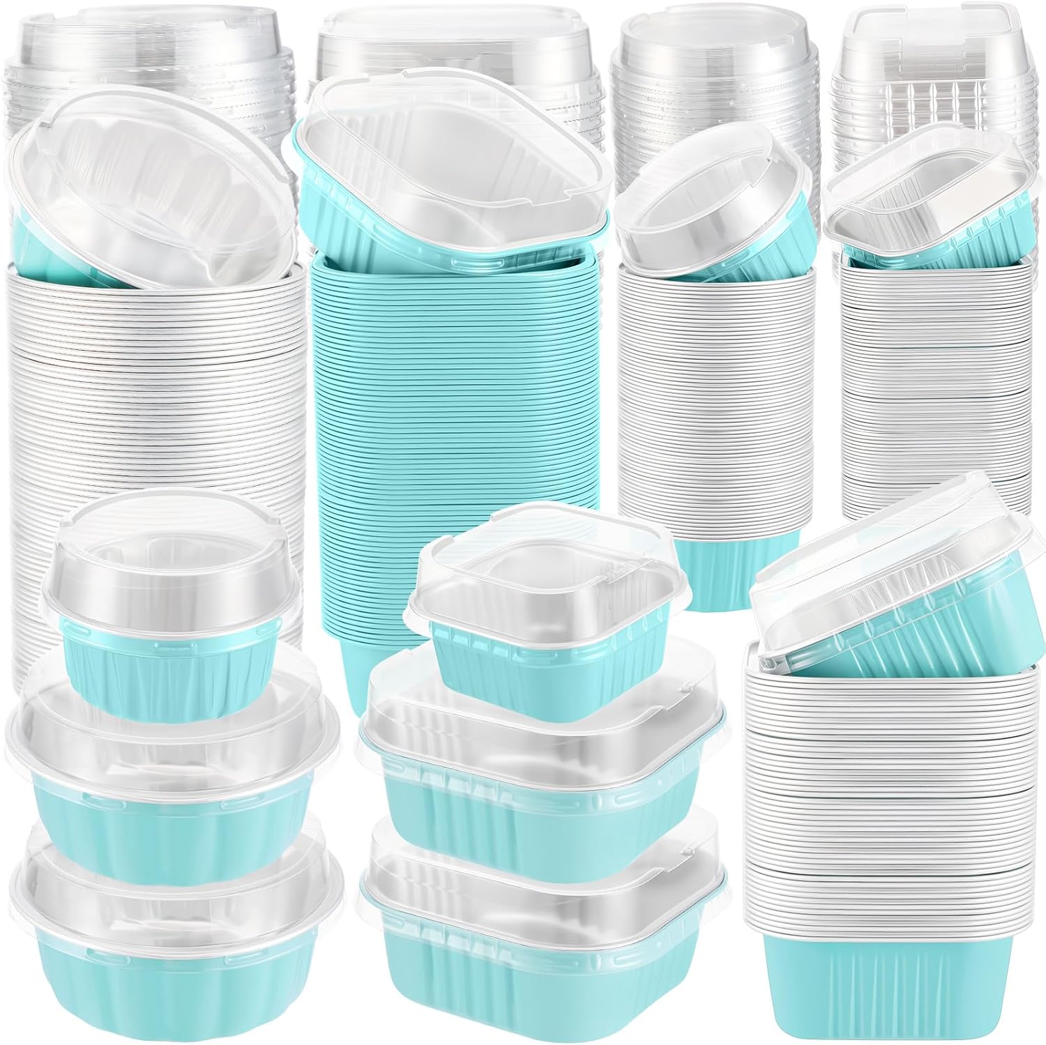 Feature: No more time wasted on pan cleaning or messy cleanup – just enjoy the joy of baking! The clear lid locks securely, keeping your food fresh in the fridge while making it effortlessly portable for picnics, potlucks, or parties. These disposable containers with lids are versatile for all kinds of desserts - muffins, cupcakes, mini cheesecakes, puddings, yogurt parfaits, ice cream bars, and beyond. They're suitable for weddings, parties, birthdays, banquets, gatherings, picnics, and any special event. Specifications: Material: Aluminum foil Size: Square pans capacity: 10 oz, 5 oz Round pans capacity: 8 oz, 4 oz Color: Black, gold Package includes: 50x Cake Pans with Lids (10 oz) 50x Cake Pans with Lids (8 oz) 50x Cake Pans with Lids (5 oz) 50x Cake Pans with Lids (4 oz) Notes: Manual measurement, please allow slight errors on size. The color may exist a slight difference due to different screen displays.