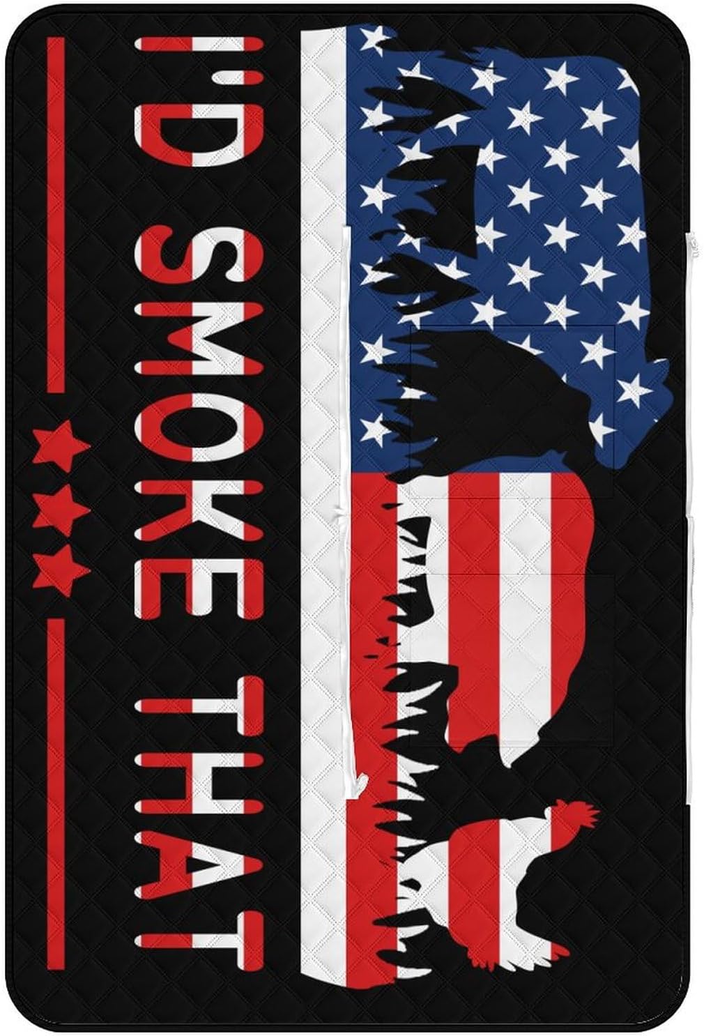Embark on your next adventure with our premium, versatile Picnic Mat, designed to elevate your outdoor experiences. Whether you're enjoying a sunny day at the park, lounging on the beach, or having a family picnic, this blanket has got you covered. Its waterproof construction ensures no more grass stains or dampness will ruin your day, making it the perfect choice for all weather conditions.Crafted with durability and comfort in mind, I'd Smoke That Patriot BBQ Barbeque Cook Chef Picnic Blanket features a high-quality blend of materials. It folds effortlessly into a compact size, complete with a convenient carry handle, making it easy to store in your car trunk or tote bag. With dimensions of 60'' x 39'' inches, it offers a spacious size design, comfortably accommodating up to four people.This multi-purpose blanket doubles as a comfortable seating surface during camping trips or even serves as a stylish accessory for women's shopping bags.Its thoughtful design, combined with exceptional functionality, makes it an essential accessory for all your outdoor escapades. Embrace the great outdoors with confidence, knowing you have a reliable, comfortable, and stylish picnic companion by your side.