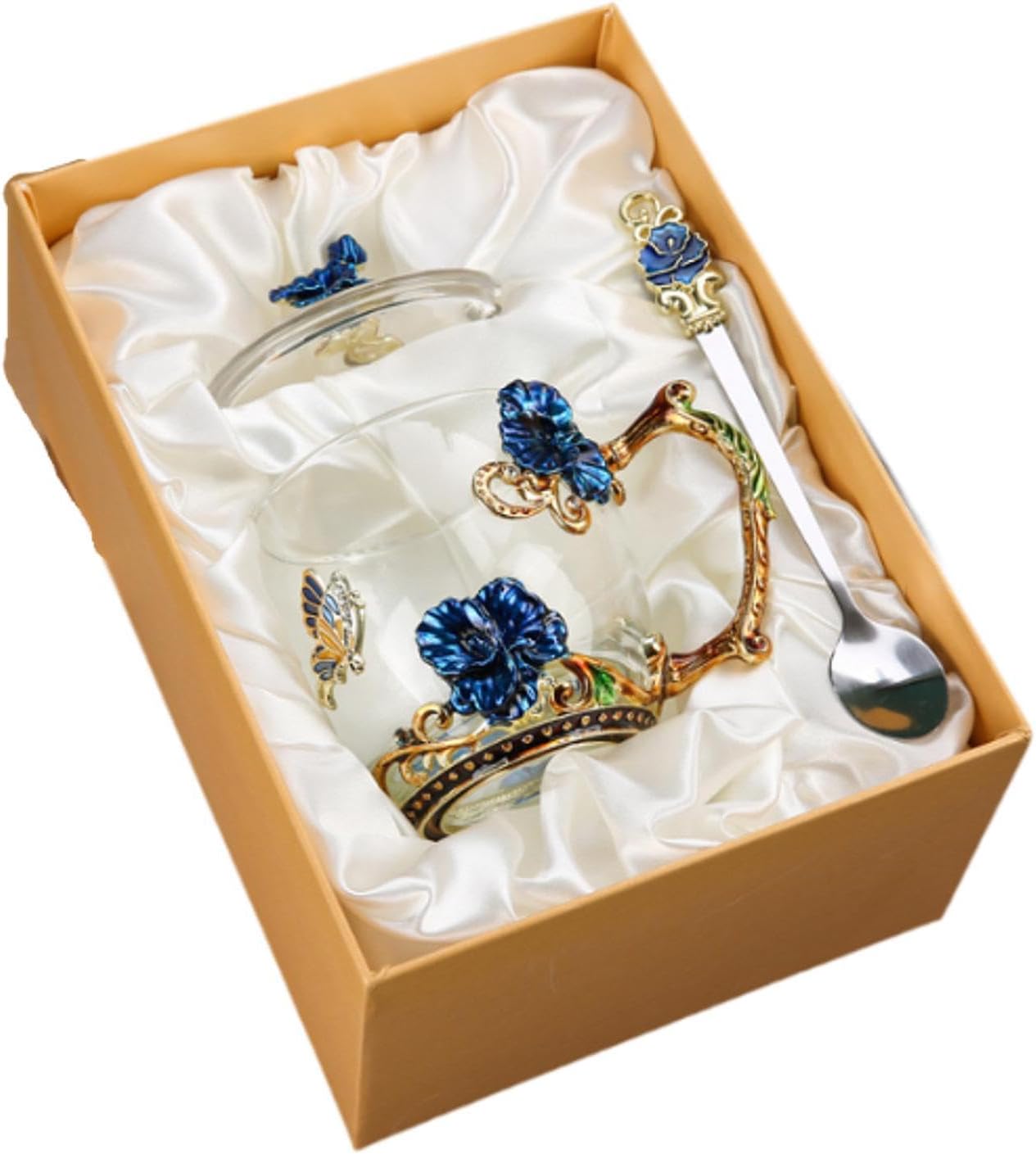 Description: - 【Enamel Design】: This glass cup set features a handcrafted enamel design, with elegant and intricate flowers and butterfly patterns that elevate your home's aesthetic. - 【Premium and Reliable】: Made from heat resistant glass material, this coffee mug comes with a lid for durability use. - 【Package Included】: The set includes an enamel spoon and a lid, which is not only aesthetically pleasing but also convenient for stirring. - 【Versatile and Practical】: Enamel Glass Tea Cup is Suitable for holding various drinks such as water, tea, milk, coffee, etc., making it ideal for daily use. - 【】: A Glass Coffee Mug with a Spoon can be used as a great gift for tea lovers, friends, mother, moms, and family.Specification: - Material: Glass - Top Width 7.2cm/2.83inch - 8.6cmx12cm/3.39inchx4.72inchPackage Includes:1 Glass Tea Cup (330ml)1 Spoon1 LidNote:Please allow slightly errors 1-2cm differences due to manual measurement.
