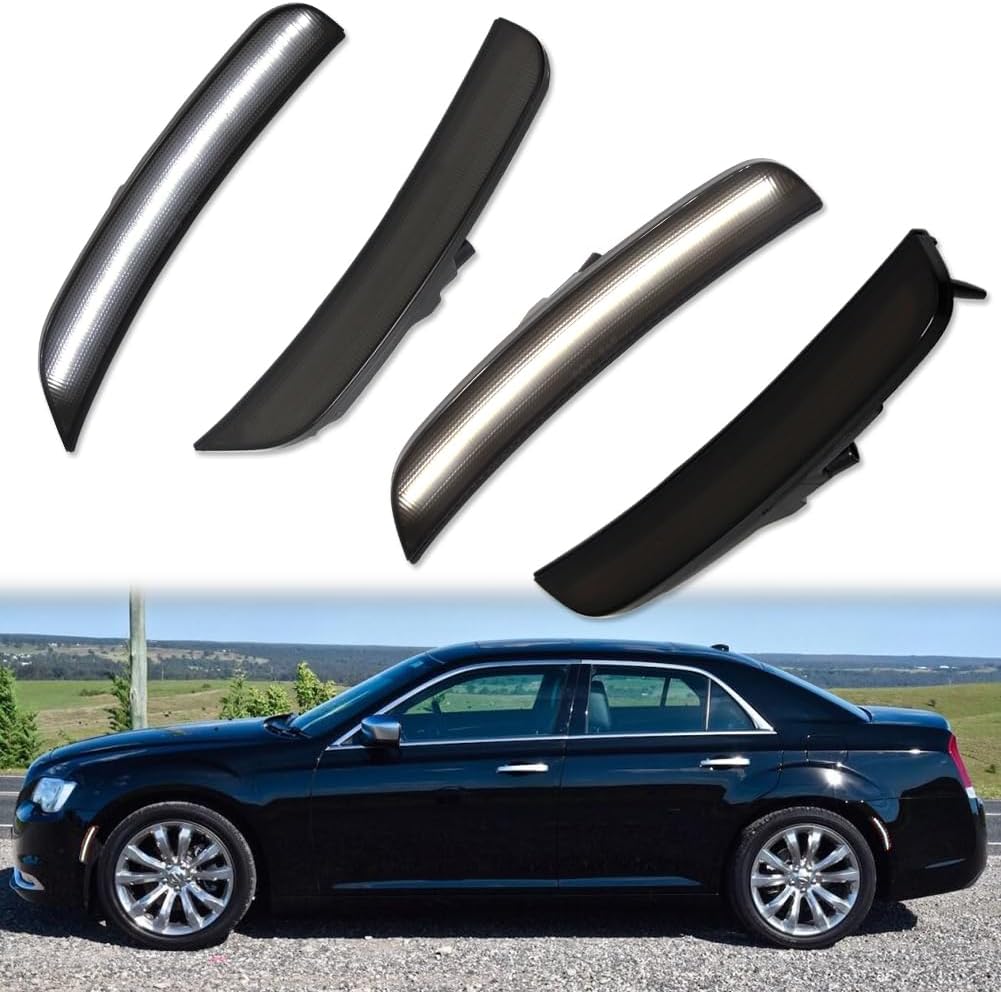 Feature: 100% Brand new and quality Clear lens Color: Blue (FRONT) & Blue (REAR) Good for 2015 2016 2017 2018 2019 2020 2021 2022 2023 2024 Chrysler 300 OEM Part Number: 68213844AD, 68213845AD, 68214402AD, 68214403AD Powered with super bright LED lights inside for front & rear side marker lamps Simple Plug N' Play: Direct Replacement, No Modification Required DOT SAE approved Replace the original amber & red lens to a more modern and Clear lens sport style Great way to upgrade your car with better lighting capabilities Fit for: For 2015 2016 2017 2018 2019 2020 2021 2022 2023 2024 Chrysler 300 Package included: 2PCS Amber LED Front Side Marker Lights 2PCS Red LED Rear Side Marker Lights