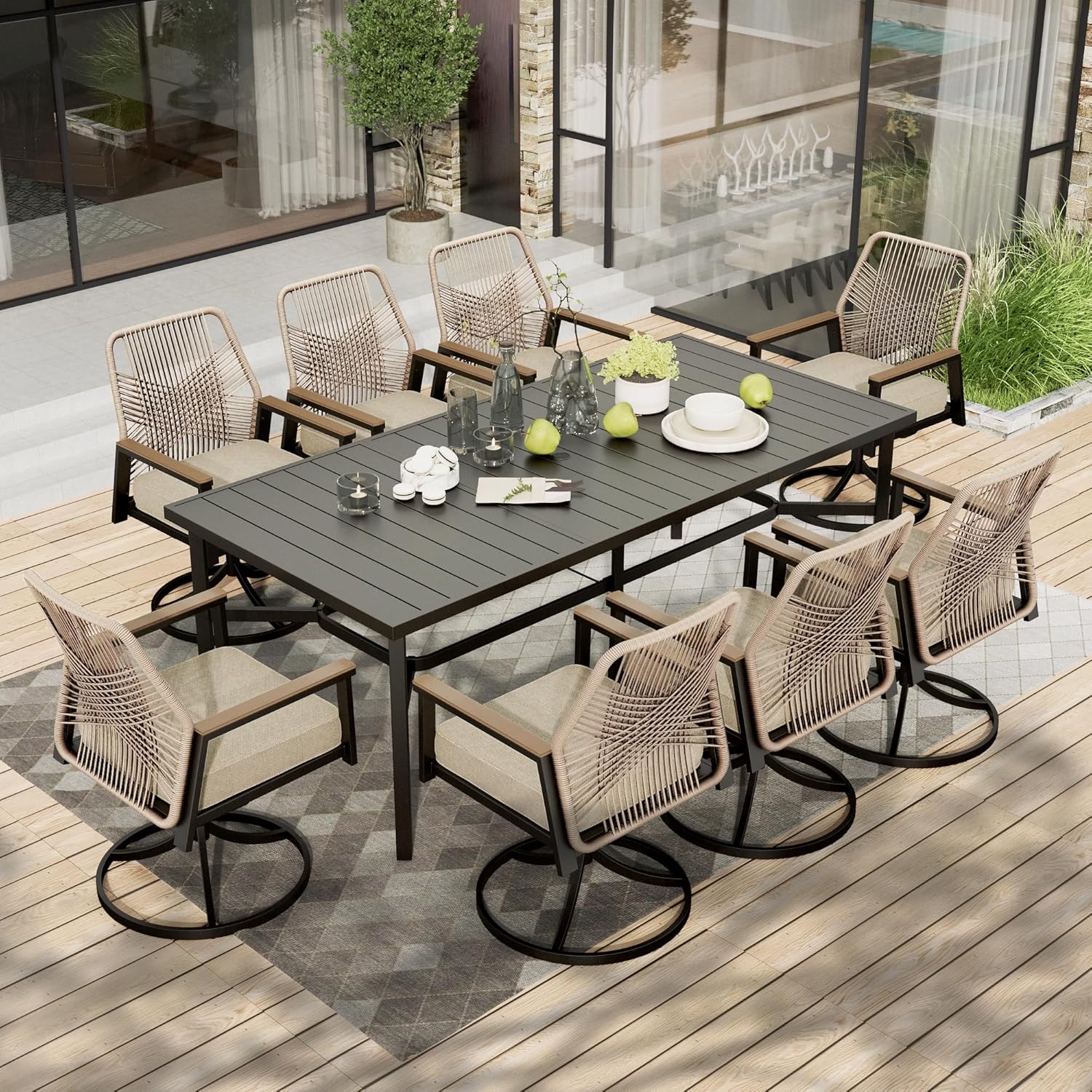 | Included Components | 2 x Cushioned Swivel Chairs and 6 x Fixed Chairs, 1 x 83" Large Rectangle Dining Table |