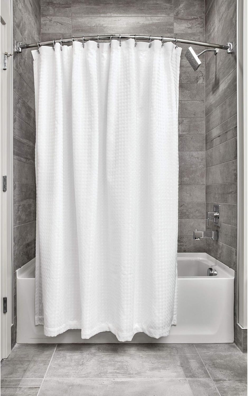 Update your bathroom with the InterDesign Waffle Weave Shower Curtain! This fast-drying, 100% polyester shower curtain is high-quality, allowing you to use it for years to come. The waffle weave texture adds simple elegance while the heathered spa blue color makes it easy to match with other pieces in your bathroom. When it is time to freshen up, simply toss the shower curtain into the washing machine for a quick and easy clean that is wrinkle-free. Designed with reinforced button holes, this curtain can be used with S hooks, ring hooks, and other shower curtain hooks. Measuring 72" x 72", the InterDesign Waffle Weave Shower Curtain fits typical bathtubs and showers on straight or curved curtain rods. With InterDesign home organization solutions, you can #livesimply every day.