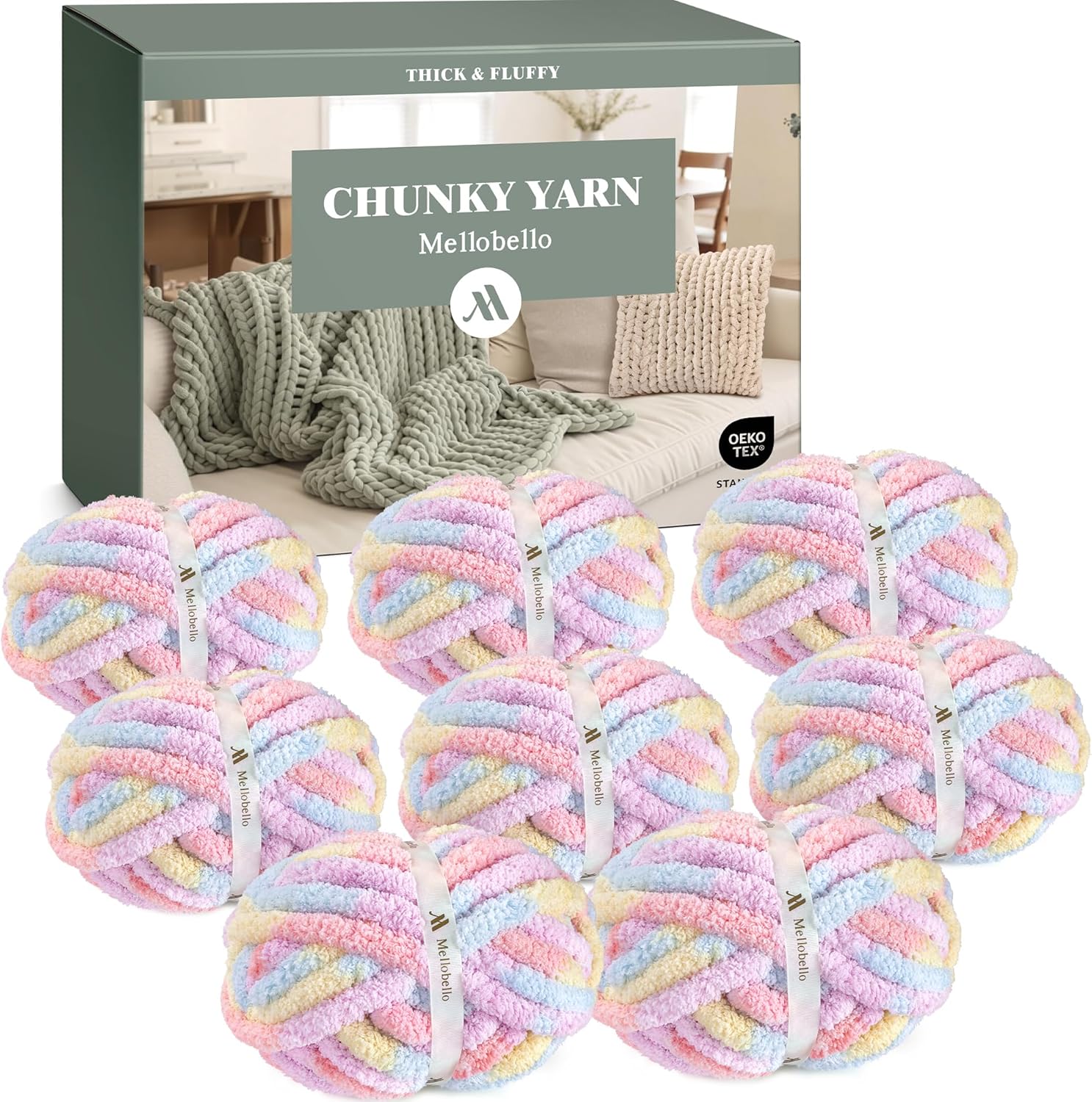 Dive into the world of knitting with this Jumbo Chenille Chunky Yarn and experience unparalleled creative joy! Each skein of this ultra-thick, fluffy yarn boasts an incredibly fine texture, with a softness as gentle as a cloud, breathing warmth and soul into your knitted creations. Whether you're a seasoned knitting expert or a beginner taking your first stitches, this yarn makes it easy to bring your ideas to life. Its extra-thick gauge boosts knitting efficiency, allowing you to complete time-consuming large projects quickly and giving you a huge sense of accomplishment. The 8-piece bulk pack, with each skein sized at 25 yards and 10 ounces, provides ample material for making large blankets, thick scarves, and more. Moreover, the extensive color options further ignite your creativity, enabling you to mix and match at will for a unique style. Whether you're creating a cozy nest for yourself or knitting heartfelt gifts, this yarn is the perfect choice, making every knitting session a warm and therapeutic experience.