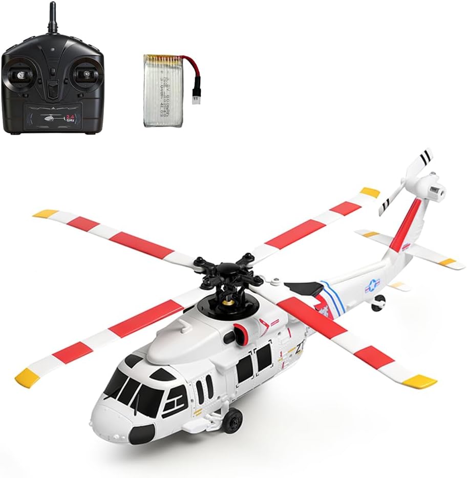 Specifications: .Item No.: K270(UH-60L).Name: 4CH 4-Rotor Flybarless Helicopter.Material: Engineering Composite Materials.Helicopter Weight: 100g (excluding battery).Flight Time: Approx. 8 minutes.Charging Time: Approx. 120 minutes.Remote Mode: 2.4G.Control Distance: 80-100 meters.Drive Motor Count: Main Motor (Brushless) 1106 11200KV, Tail Motor (Corless) 720.Battery: 3.8V 800mAh 20C.Product Weight: 818g.Package Weight: 941.7g.Product Dimensions: 26.5 x 26 x 7.2cm.Package Dimensions: 36 x 26.5 x 9cm.Outer Box Dimensions: 56 x 38 x 57cm.Packing: Graphic Carton.Age: 16+