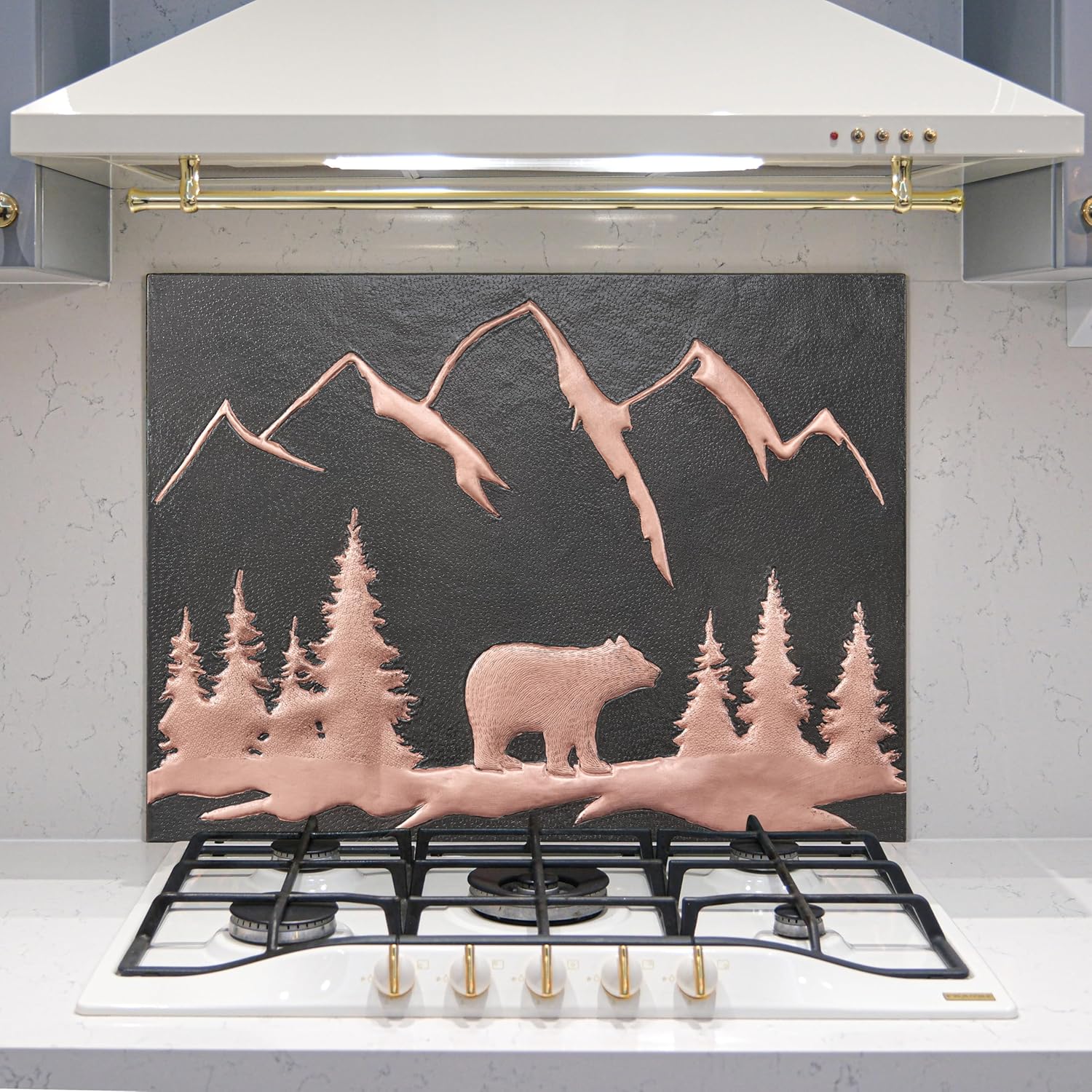 Kitchen Backsplash, Bear in the Forest Copper Backsplash, Custom Copper Backsplash Panel, Handmade Copper Backsplash Tile, Indoor Outdoor Wall Decor (Gray&Black)