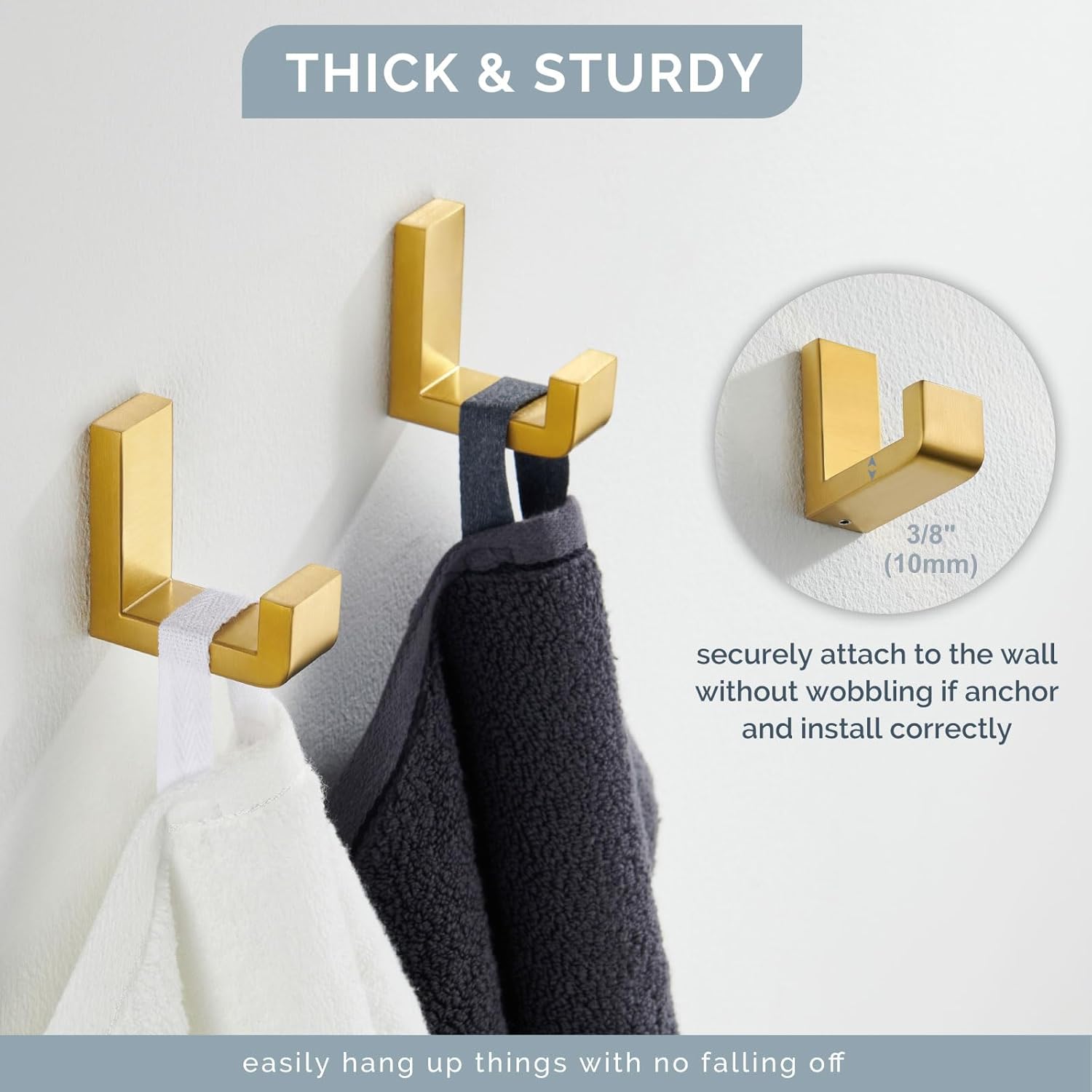 L Shape Bath Towel Hook 2 PCS Bundle with Double Robe Hook 2 PCS (Brushed Gold)