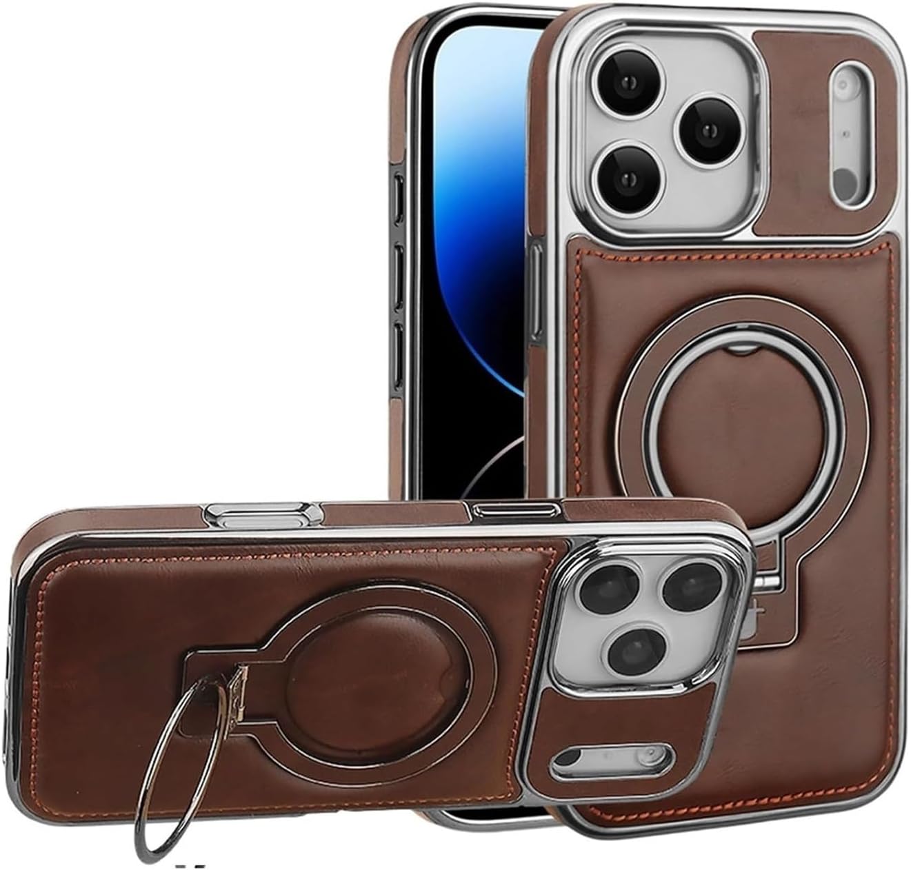 Upgrade your everyday style and protection with the Leather Magnetic Stand Case for iPhone 17 Pro Max / 17 Pro / 17 / 17 Air.This slim business-style cover combines luxury leather, strong magnetic power, and drop protection in one sleek design.Wireless ChargingBuilt-in magnets auto-align with wireless chargers. Faster, safer charging without removing your case.Invisible Kickstand for Hands-Free LifeEnjoy movies, anywhere. The hidden stand rotates 360° and flips 120°, giving you the perfect viewing angle—portrait or landscape.Military-Grade Drop ProtectionTested up to 20ft. Shock-absorbing TPU + polycarbonate layers shield your phone. Raised bezels protect screen and camera from scratches and drops.Luxury Leather GripPremium cowhide finish feels soft yet firm. Anti-slip texture prevents accidental slips. Anti-fingerprint surface keeps your phone looking fresh all day.Lightweight & PracticalEasy access to all ports and buttons. Slim, stylish, and pocket-friendly—perfect for work, travel, gaming, or nights out.Package Includes:1 × Leather Magnetic Stand Case for iPhone 17