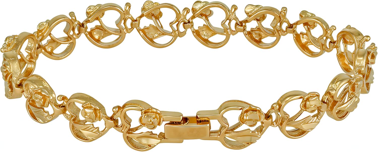 | Style | Diamond Cut Hearts and Roses Bracelet/12.5mm & 10.5mm (G & RD) |