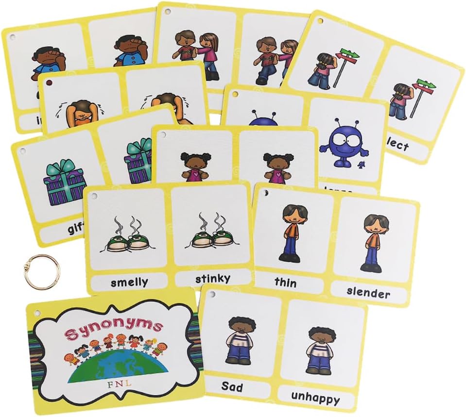 Enhance vocabulary and language skills with our Antonyms English Grammar Double-Side Learning Flash Cards. This 51-card set is perfect for homeschooling, preschool, primary school, ESL, and autism support. It includes 100 groups of antonyms, making it an excellent tool for building vocabulary. Each card measures 3.62 X 5.35 inches and is double-sided, crafted from durable 350g coated paper with a waterproof and anti-folding design. The colorful illustrations and pictures make learning fun and engaging. The included metal ring keeps the cards organized and easily accessible. Invest in these flashcards for effective and enjoyable learning.